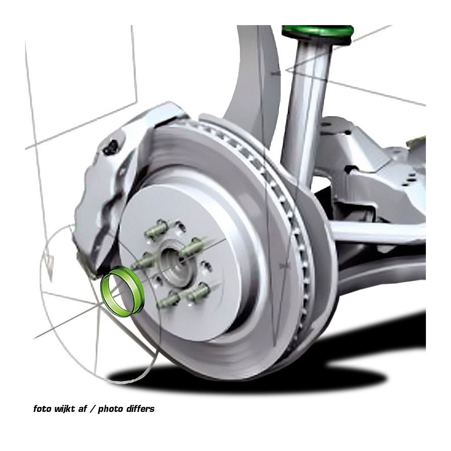 Ringen placeras runt navhålet och säkerställer att fälgen är korrekt monterad under bilen för att förhindra vibrationer.