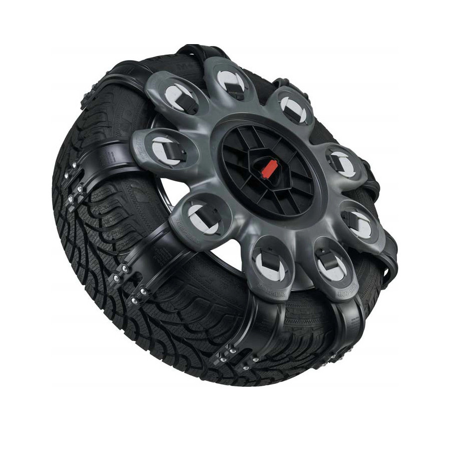 SpecifikationerSpikes Spider Compact 4 snökedjor Spikes Spider Compact är en mångsidig snökedja som passar nästan alla fordon. Användningen av ett slutet kedjesystem gör installationen snabb och enkel, den tar bara 30 sekunder. Denna snökedja är speciellt utformad för bilar med begränsat utrymme mellan däck och hjulhus, och du behöver inte oroa dig för att skada lättmetallfälgar. Tack vare det praktiska klicksystemet kan du enkelt justera kedjelängden så att den passar dina däck. - Mycket enkel att installera