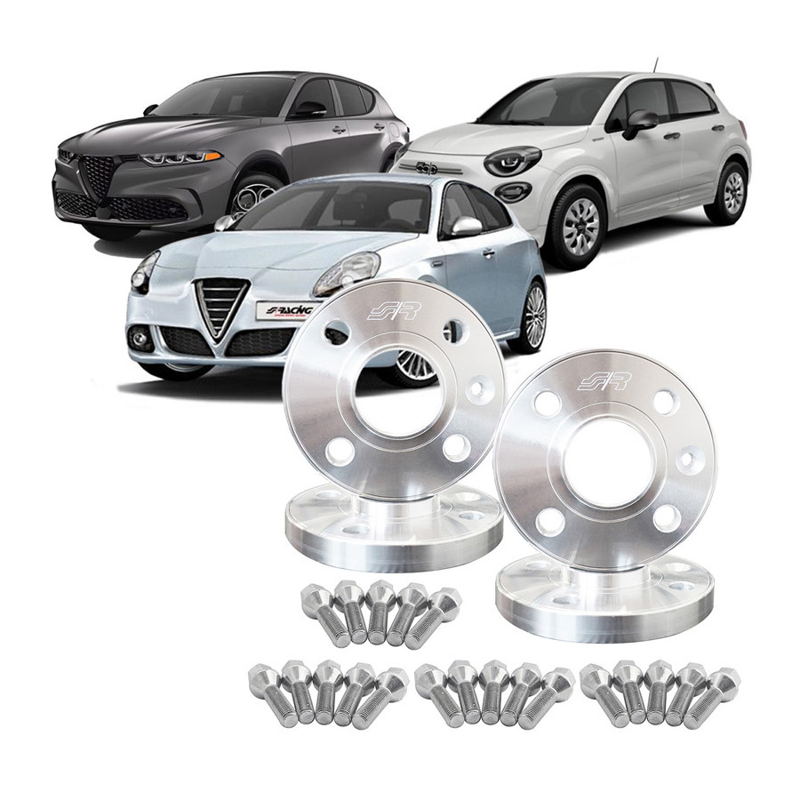Simoni Racing Aluminium Hjulspacer Set - 2x17,5mm (framaxel) + 2x20mm (bakaxel) inklusive hjulbultar - passar till Fiat, Alfa Romeo diverse