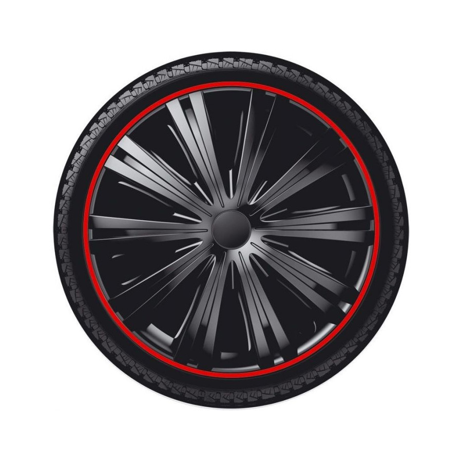 Hjulkapselsats Giga R 15-tums svart/röd