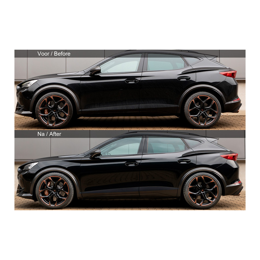 H&R Monotube Coilover lämplig för Cupra Formentor 1.4 e-Hybrid 2020- VA50-65/AA45-65mm H&R Monotube Coilover erbjuder dynamisk prestanda utan att tappa körkomfort. Dessa Monotube coilovers har en gängad stötdämpare som möjliggör praktiskt taget oändliga höjdjusteringar. Produktfördelar: Monotub gasstötdämpare för exakt respons Speciella högkvalitativa H&R-fjädrar Inklusive justeringsnyckel Robust trapetsgänga för höjdjustering Långsiktigt korrosionsskydd Med TÜV Högkvalitativa komponenter för lång livslängd Tillverkad i Tyskland Gäller: Cupra Formentor Typ KM, 2020-, 1.4 e-Hybrid inkl. VZ, inkl. , inkl Adaptiv fjädring, framaxel 50-65 mm / bakaxel 45-65 mm Anmärkningar:1) För modeller med sportupphängning som tillval kan sänkningen vara mindre2) Installationen av denna sats på modeller med elektronisk spjällstyrning (DCC, EDC, etc.) får endast utföras av en märkesspecifik fackverkstad/märkeshandlare. Signalen från det elektroniska spjällsystemet i displayen måste avaktiveras. Observera belgiska kunder Goca-certifikatet för Belgien ingår inte som standard. Du kan begära detta via din Autostyle-återförsäljare. Priset för certifikatet är €30,-