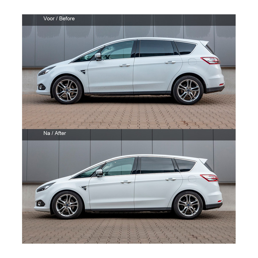 Ford S-Max Typ WA6, 2WD, Facelift 2015, utan original sportfjädring, nivåreglering eller interaktivt fjädringssystem 2015- Framaxel 25 mm/Bakaxel 30 mmUppmärksamhet belgiska kunder.