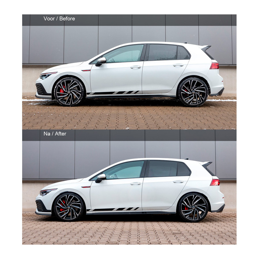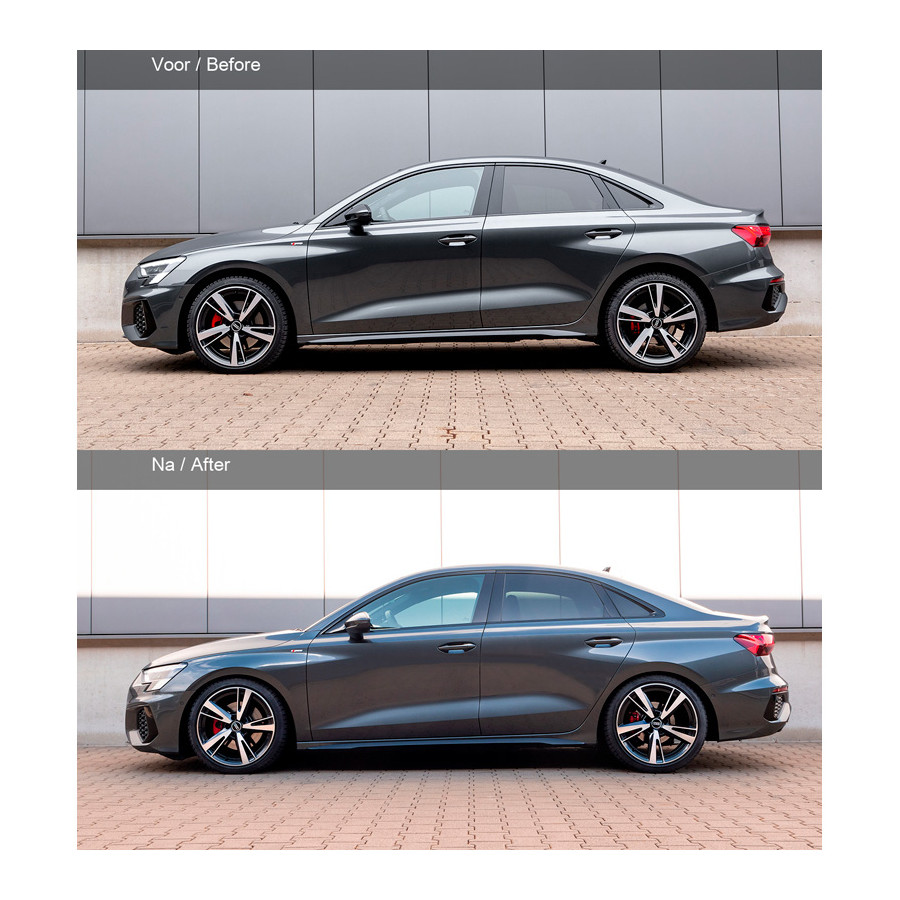 Audi A3 Sedan/Sportback (GY) 2020-, från 991kg Framaxeltryck, endast med multilink bakaxel, inkl adaptiva stötdämpare, exkl. dålig vägfjädring, Framaxel 50mm / Bakaxel 50mm, inkl sportfjädring Ca. VA35/AA35mm,Uppmärksamma belgiska kunder.