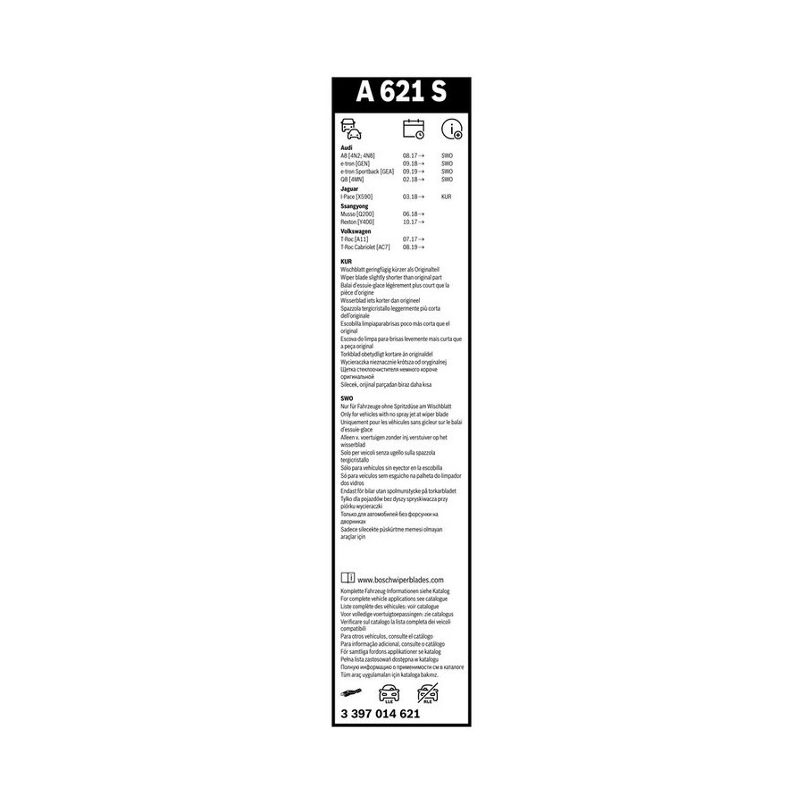 Bosch vindrutetorkare Aerotwin A621S - Längd: 650/500 mm - set med torkarblad för