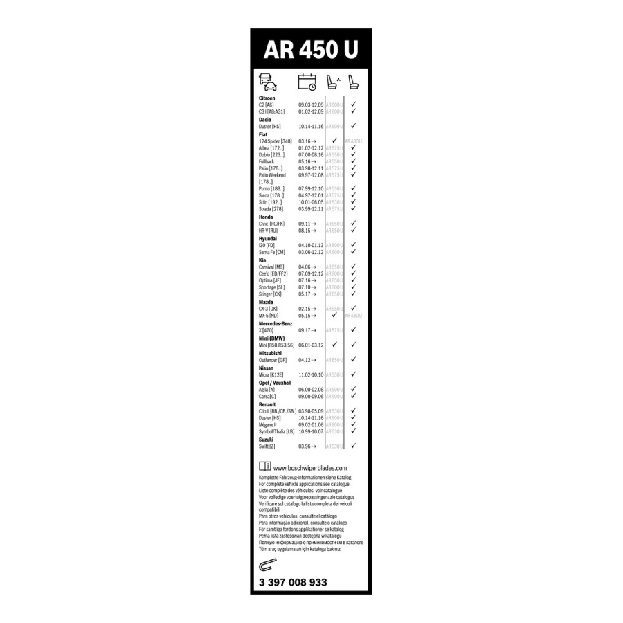 Bosch torkare Aerotwin AR450U - Längd: 450 mm - enkel fronttorkare