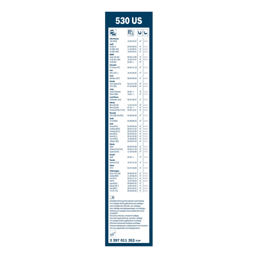 - Leveransomfång: 1 torkarblad för vindruta längd: 530 mm