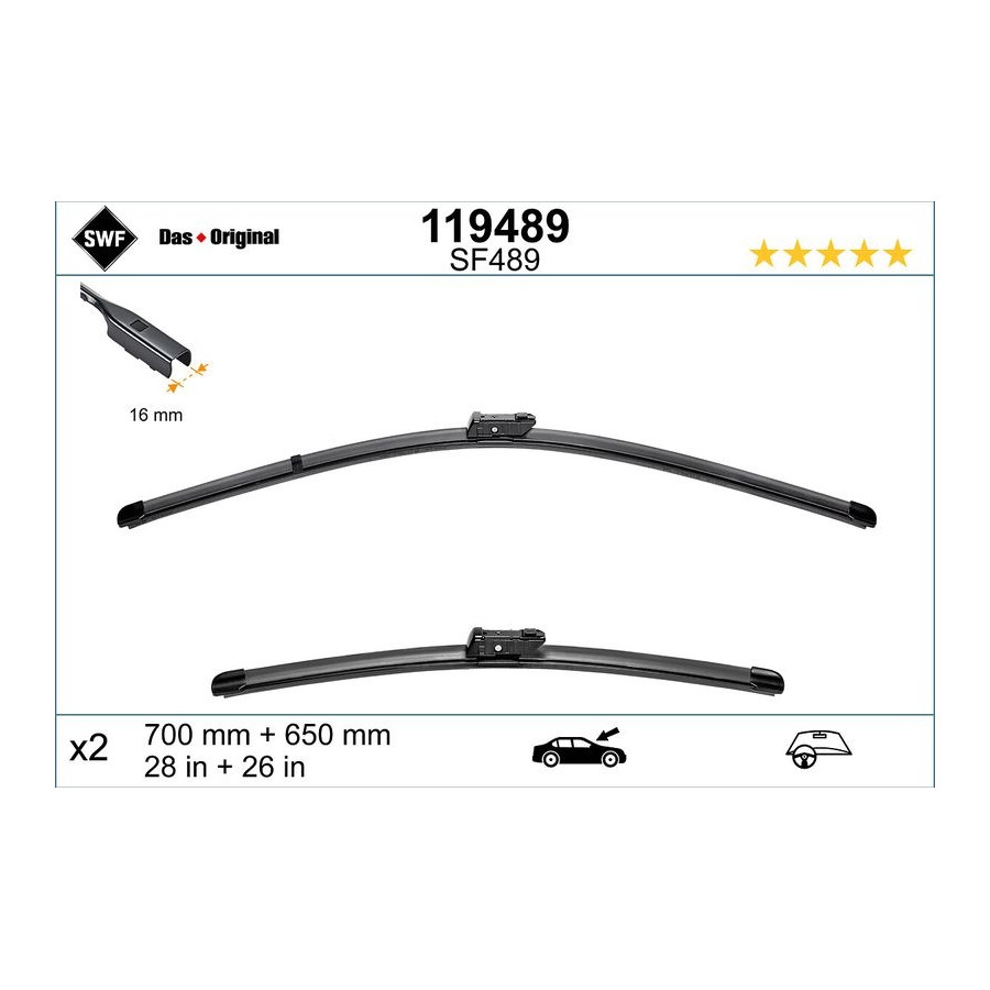 Längd [mm] 700 / 650 700 650 Position Fram Antal 2 Vindrutetorkartyp Flatblade Styling Med spoiler Garanti 2 år Vänster / höger styr För fordon med vänsterstyrd Längd 1 [tum] 28 Längd 2 [tum] 26 Liknande produkter från andra tillverkare