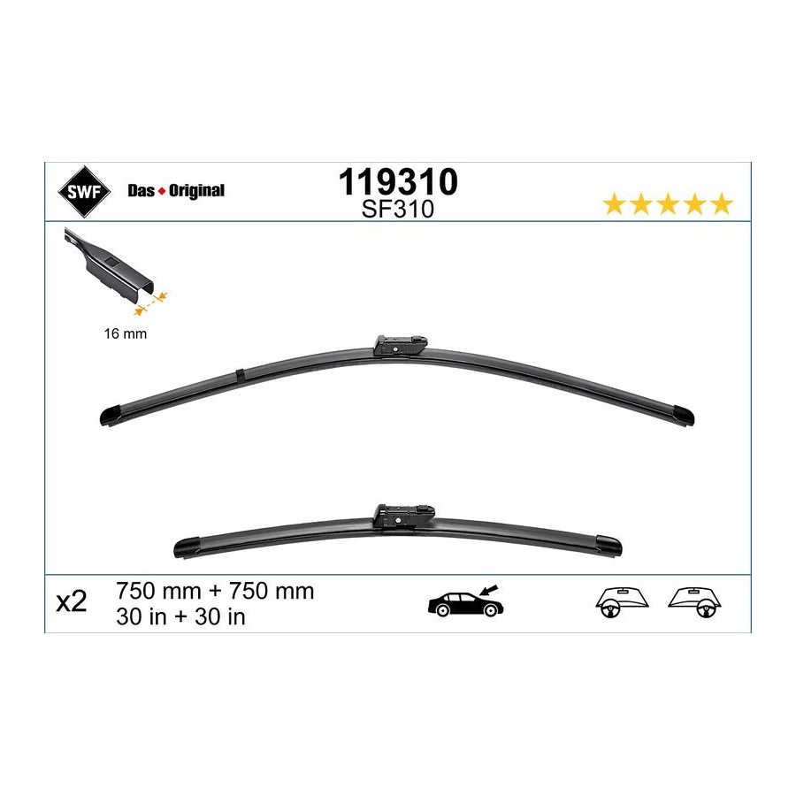 | Torkarbladsutförande | Flatblade-torkarblad |