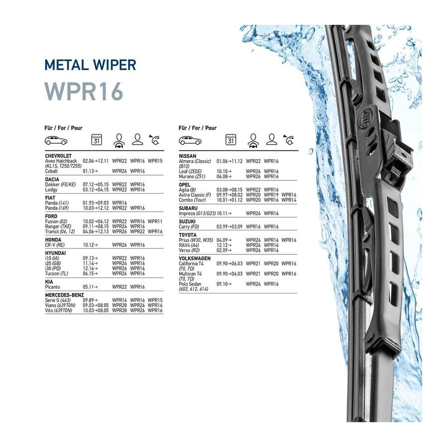 Vindrutetorkare i metall 9XW 190 253-161 Hella