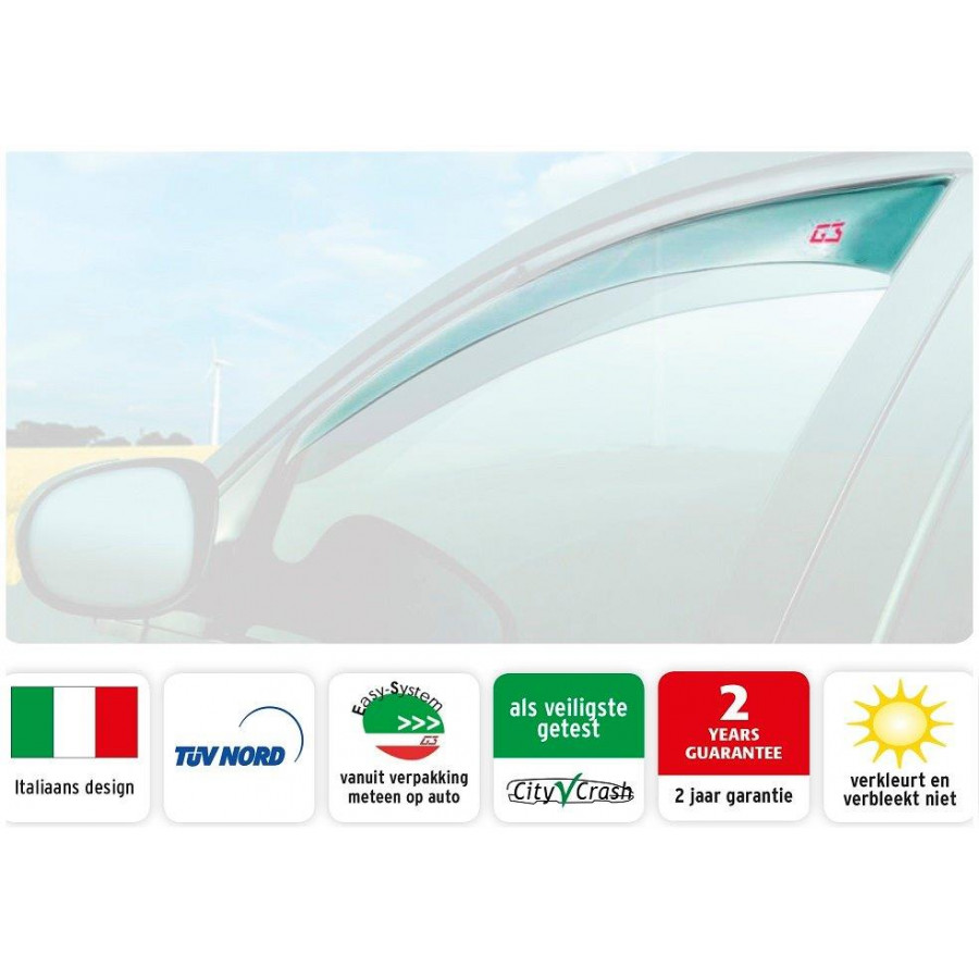 G3: s svindel ger dig stora fördelar året runt. Du kan också lämna dina fönster öppna under regnet och på sommaren har du utmärkt ventilation utan vindbrus på grund av de öppna fönstren. Den eleganta, aerodynamiska designen och den lilla toningen av tvärvindarna gör dem till ett bra komplement till alla fordon. Med G3 Quick-Fit System kan du montera tvärvindar snabbt och enkelt.