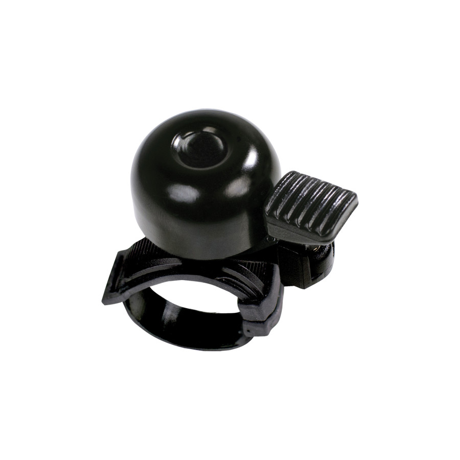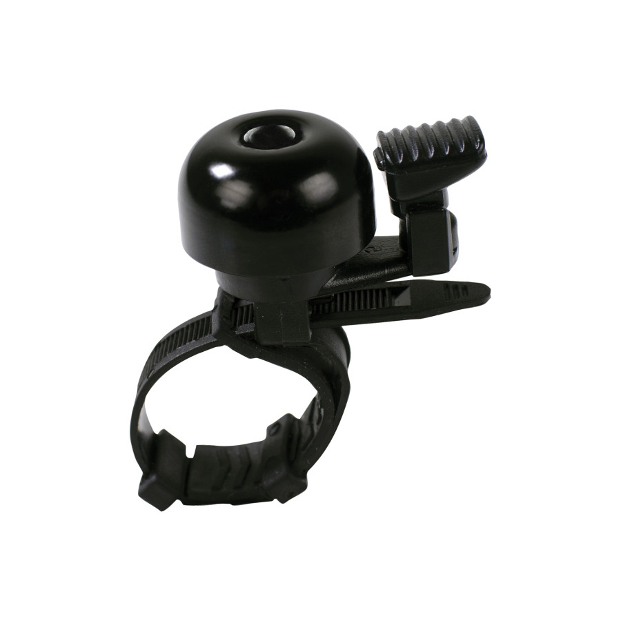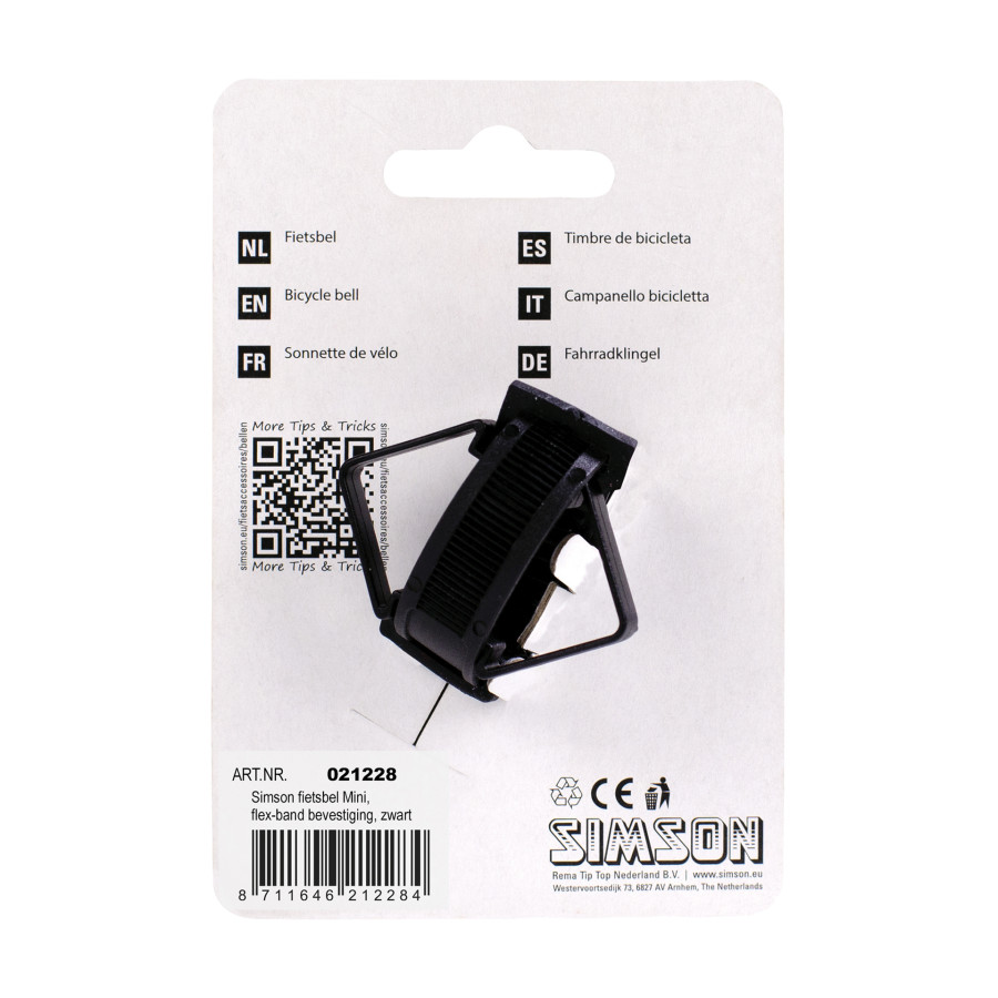 Simson cykelklocka Mini - med universell flexbandfäste - kan snabbt och enkelt monteras på nästan vilket styr och styr som helst, utan verktyg. Den svarta Simson-klockan har en diameter på 32mm och är gjord av aluminium med ett plastband. Detta ger klockan ett sportigt utseende och ett klart ljud.
