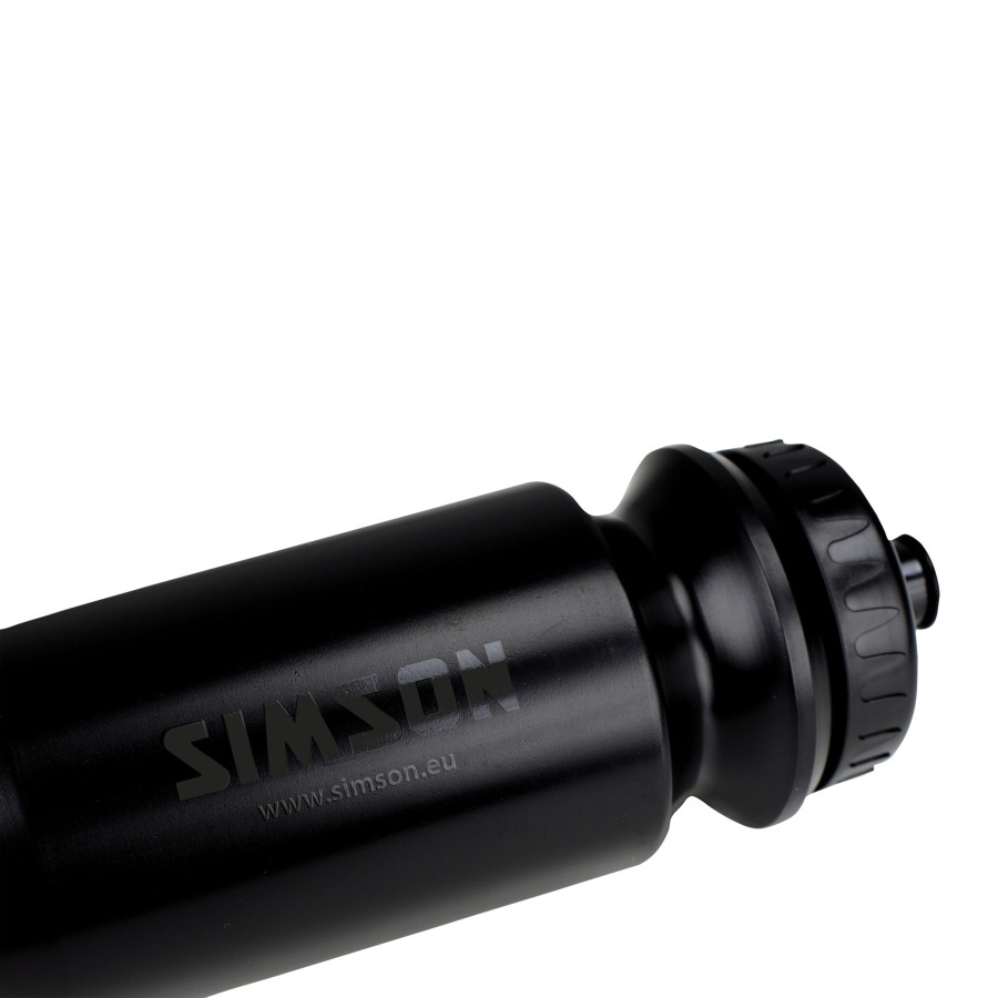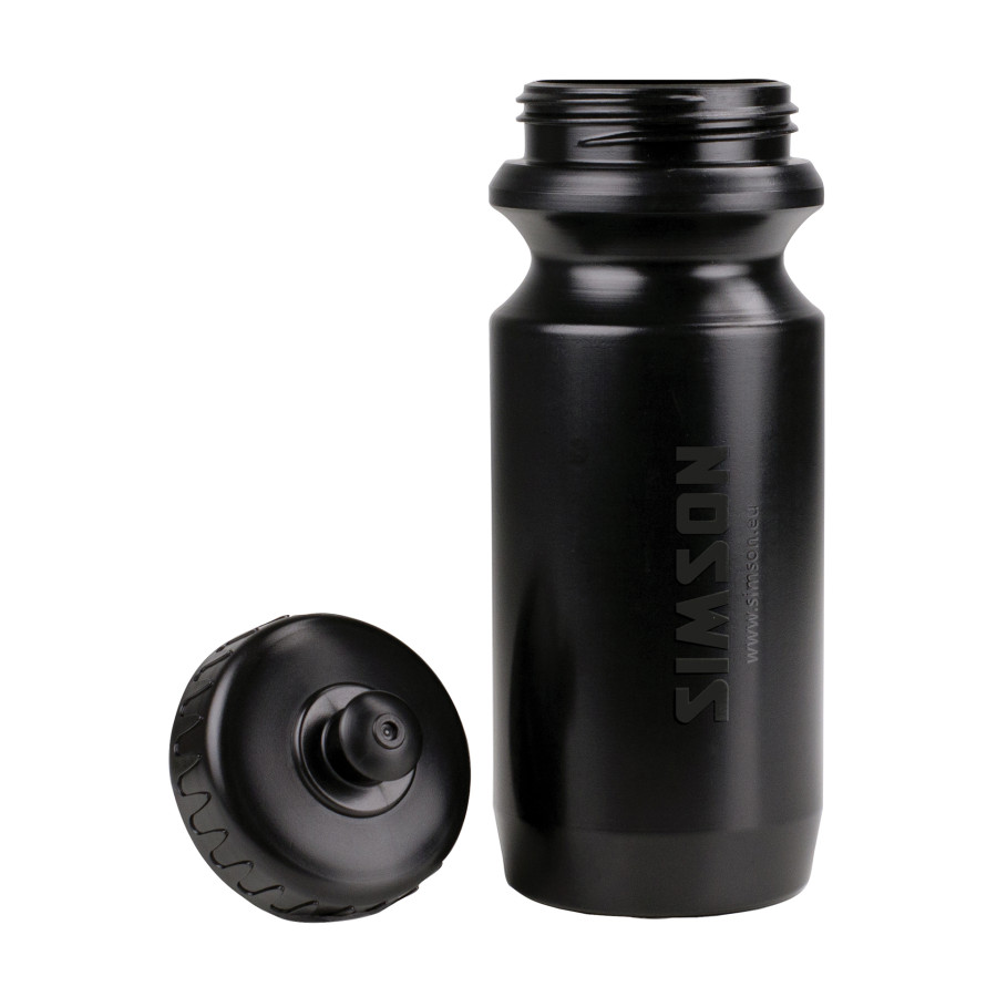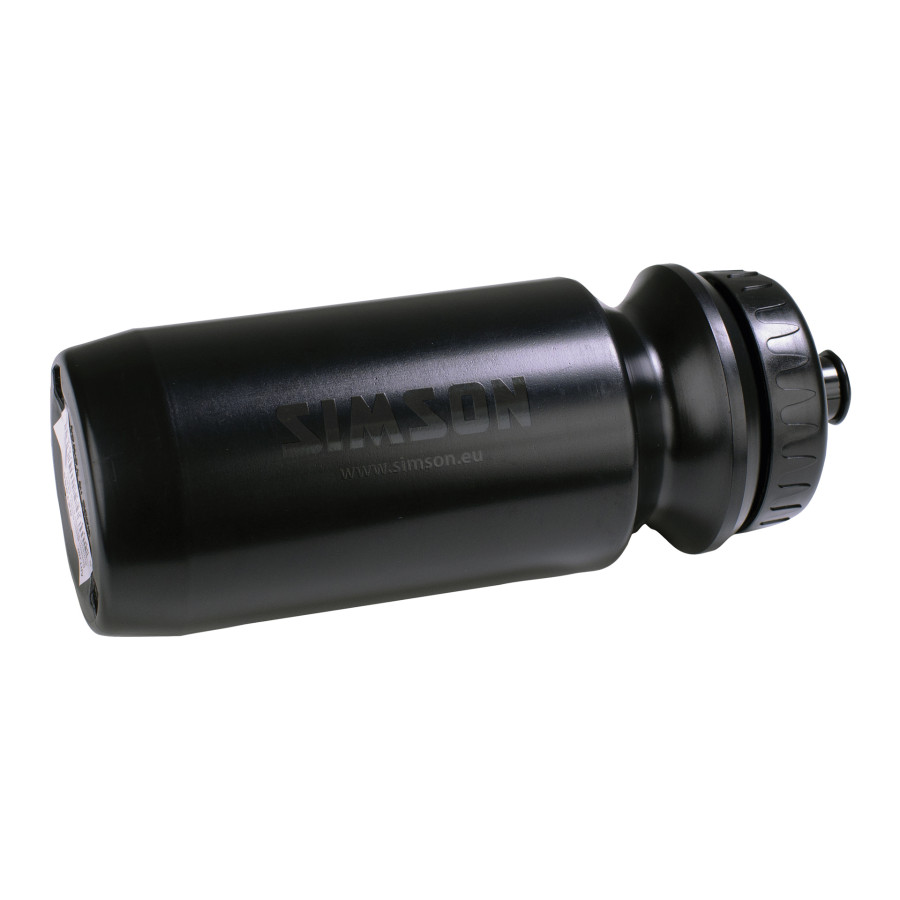 Denna mattsvarta Simson vattenflaska är lätt att använda när du cyklar eller tränar. Simson vattenflaska har en kapacitet på 600ml och har en låsbar pip. Detta gör flaskan lätt att använda med en hand. Flaskan är gjord av LDPE-plast. Detta gör flaskan flexibel, lätt och av hög kvalitet.