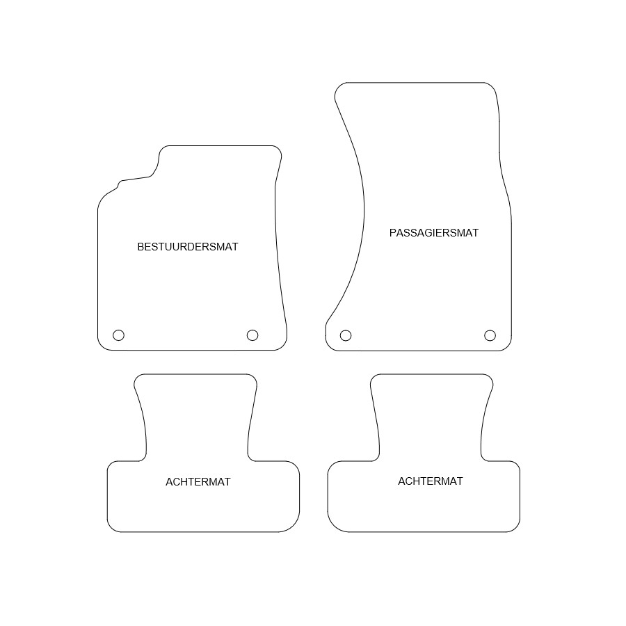 Du placerar dessa bilmattor enkelt och säkert på bilens monteringshål. Botten är tillverkad av robust slipskyddande granulat och högkvalitets nålfilt ger en mycket lång livslängd. I vissa fall måste du överföra fastsättningen av dina gamla mattor och / eller en matta kan bestå av en bit (MPV / buss). Vill du ha hjälp med att beställa rätt bilmattor? Fråga vår kundtjänst!