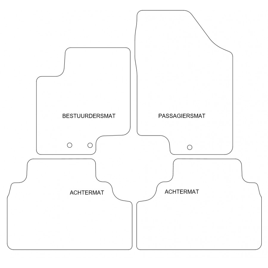 Du kan enkelt och säkert placera dessa bilmattor på bilens monteringshål. Undersidan är gjord av robust halksäker granulat och nålfiltet av hög kvalitet garanterar en mycket lång livslängd. I vissa fall måste du överföra fästet på dina gamla mattor och / eller en matta kan bestå av ett stycke (MPV / buss). Vill du ha hjälp med att beställa rätt bilmattor? Fråga vår kundtjänst!