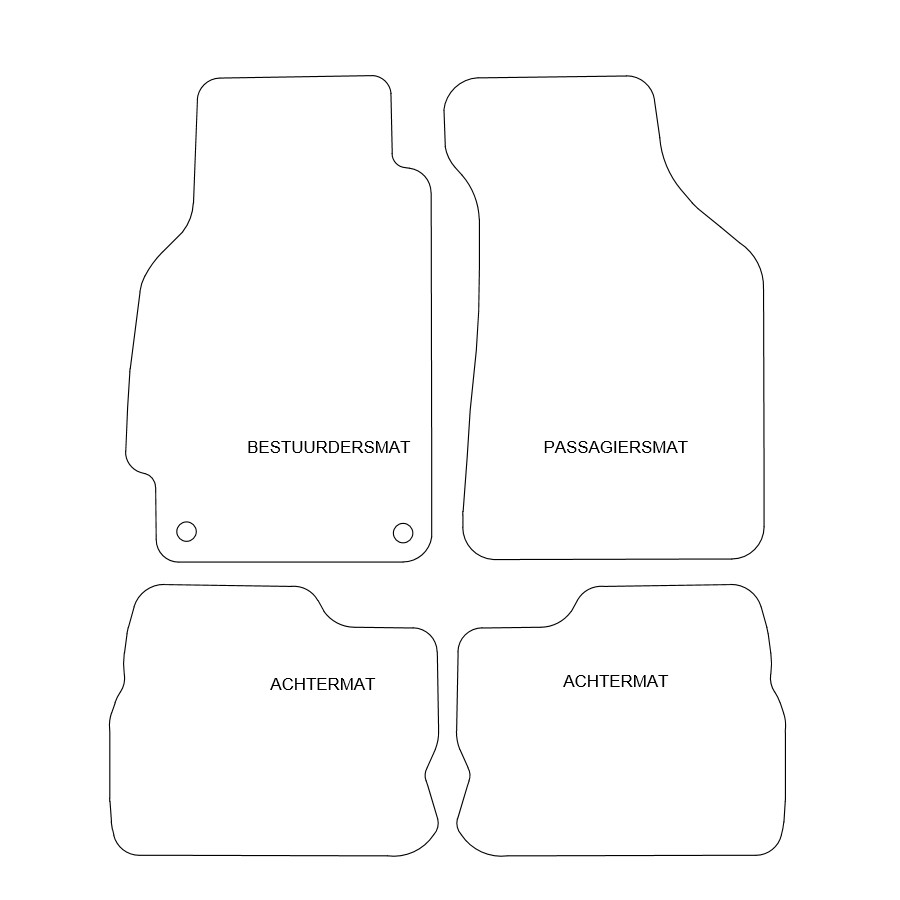 Dessa bilmattor i velour är enkla och säkra att installera i bilens monteringshål. Undersidan är tillverkad av robust NSF-gummi, och den högkvalitativa velouren säkerställer en mycket lång livslängd och ljudreducering. Tack vare den exklusiva kantbandskanten och det tjocka NSF-baksidan får du inte bara ett lyxigt utseende utan också den önskade komforten! I vissa fall kan du behöva flytta monteringen av dina gamla mattor, och/eller en matta i ett stycke kan krävas (för MPV:ar/bussar).