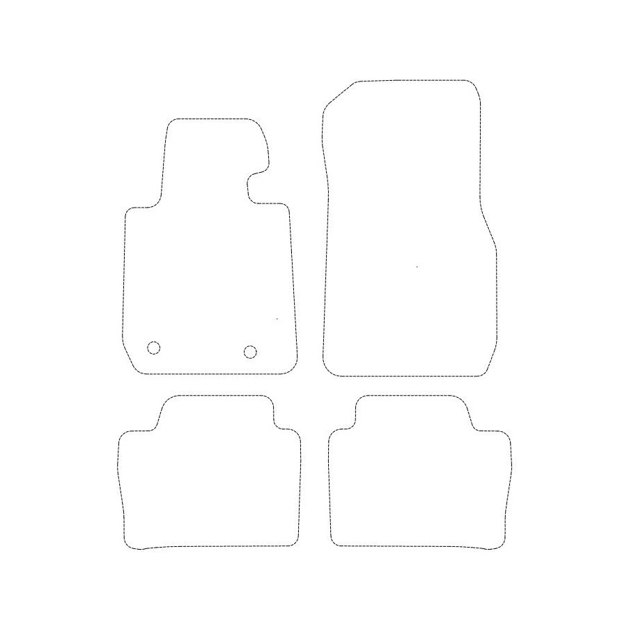 Du kan enkelt och säkert placera dessa velourmattor på bilens monteringshål. Undersidan är gjord av robust NSF-gummi och den högkvalitativa veluren garanterar en mycket lång livslängd och brusreducering. Tack vare den exklusiva bandkanten och den tjocka NSF-ryggen får du också önskad komfort utöver det lyxiga utseendet! I vissa fall måste du överföra fästet på dina gamla mattor och / eller en matta kan bestå av ett stycke (MPV / buss).