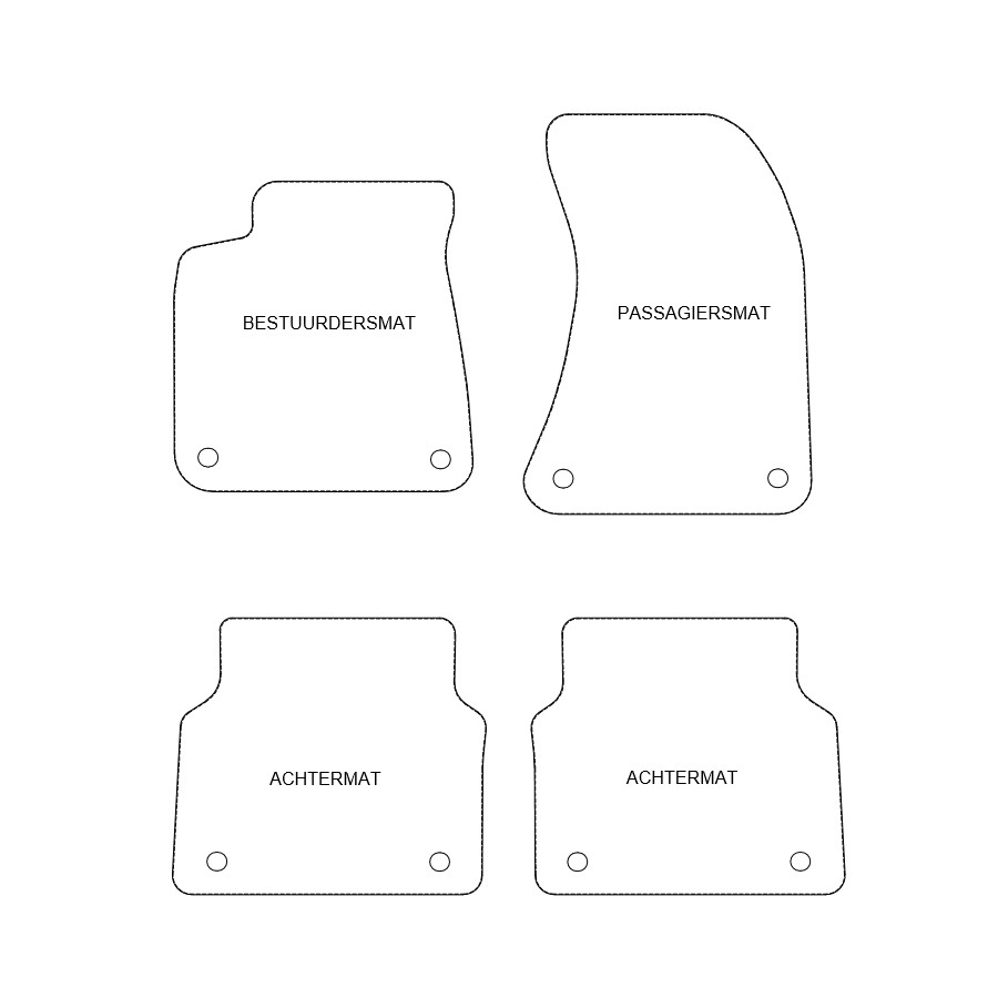Du placerar dessa bilmattor enkelt och säkert på bilens monteringshål. Botten är tillverkad av robust slipskyddande granulat och högkvalitets nålfilt ger en mycket lång livslängd. I vissa fall måste du överföra fastsättningen av dina gamla mattor och / eller en matta kan bestå av en bit (MPV / buss). Vill du ha hjälp med att beställa rätt bilmattor? Fråga vår kundtjänst!
