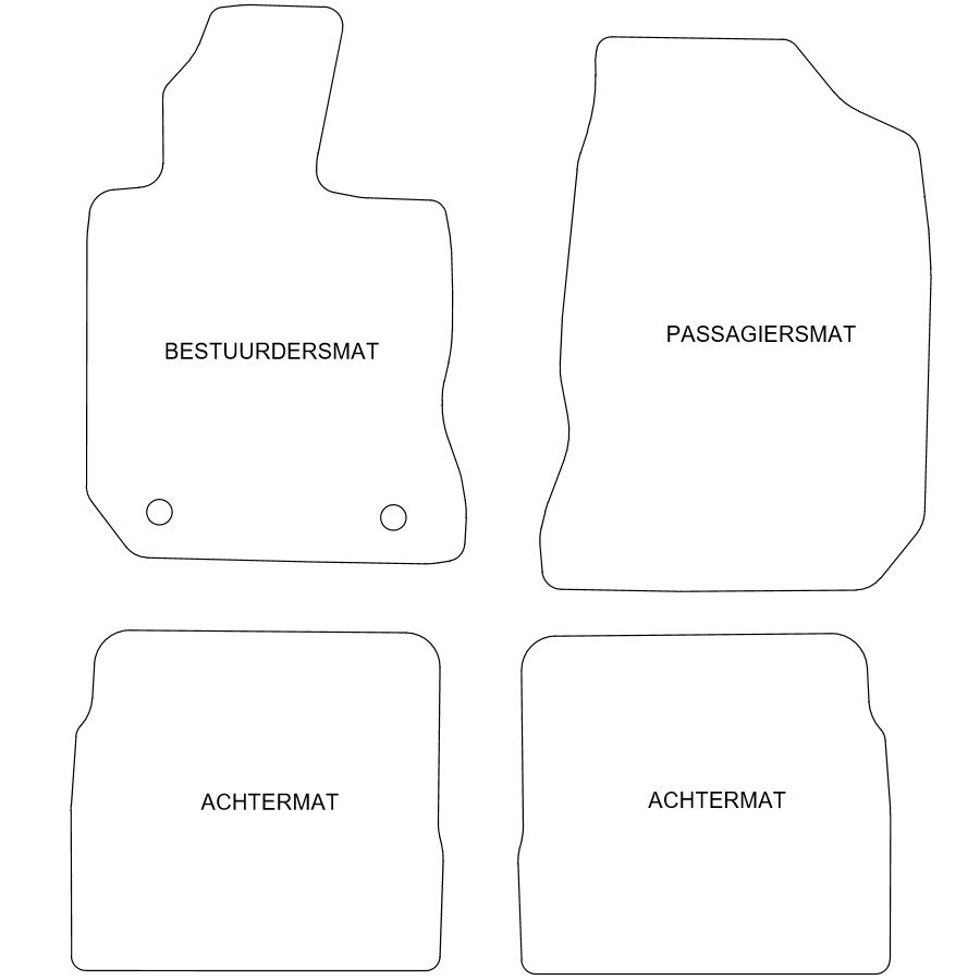 Du placerar dessa bilmattor enkelt och säkert på bilens monteringshål. Botten är tillverkad av robust slipskyddande granulat och högkvalitets nålfilt ger en mycket lång livslängd. I vissa fall måste du överföra fastsättningen av dina gamla mattor och / eller en matta kan bestå av en bit (MPV / buss). Vill du ha hjälp med att beställa rätt bilmattor? Fråga vår kundtjänst!