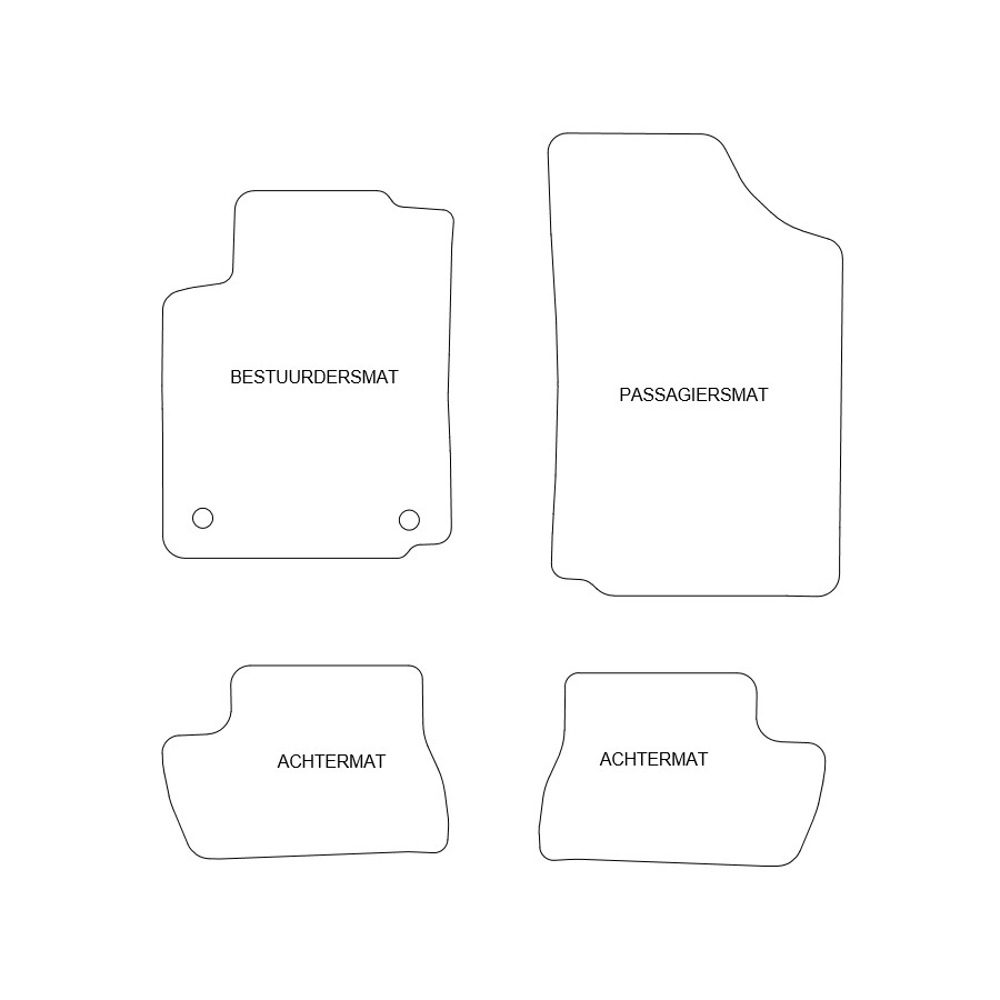 Du kan enkelt och säkert placera dessa bilmattor på bilens monteringshål. Undersidan är gjord av robust halksäker granulat och nålfiltet av hög kvalitet garanterar en mycket lång livslängd. I vissa fall måste du överföra fästet på dina gamla mattor och / eller en matta kan bestå av ett stycke (MPV / buss). Vill du ha hjälp med att beställa rätt bilmattor? Fråga vår kundtjänst!