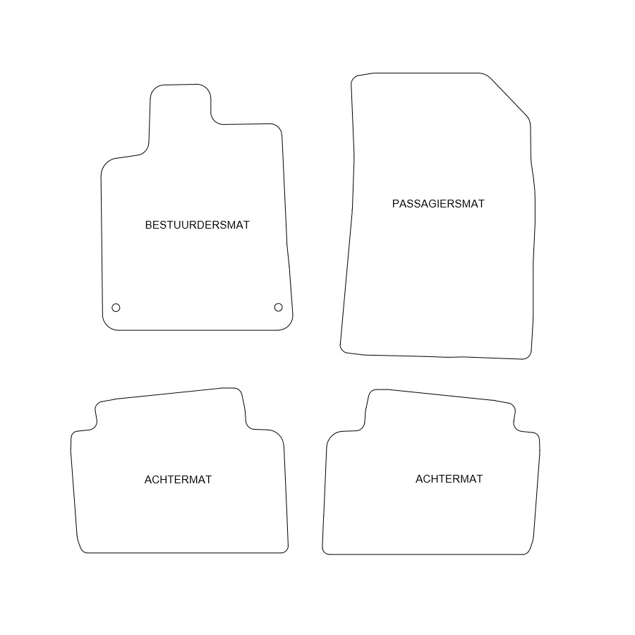 Du kan enkelt och säkert placera dessa bilmattor på bilens monteringshål. Undersidan är gjord av robust halksäker granulat och nålfiltet av hög kvalitet garanterar en mycket lång livslängd. I vissa fall måste du överföra fästet på dina gamla mattor och / eller en matta kan bestå av ett stycke (MPV / buss). Vill du ha hjälp med att beställa rätt bilmattor? Fråga vår kundtjänst!