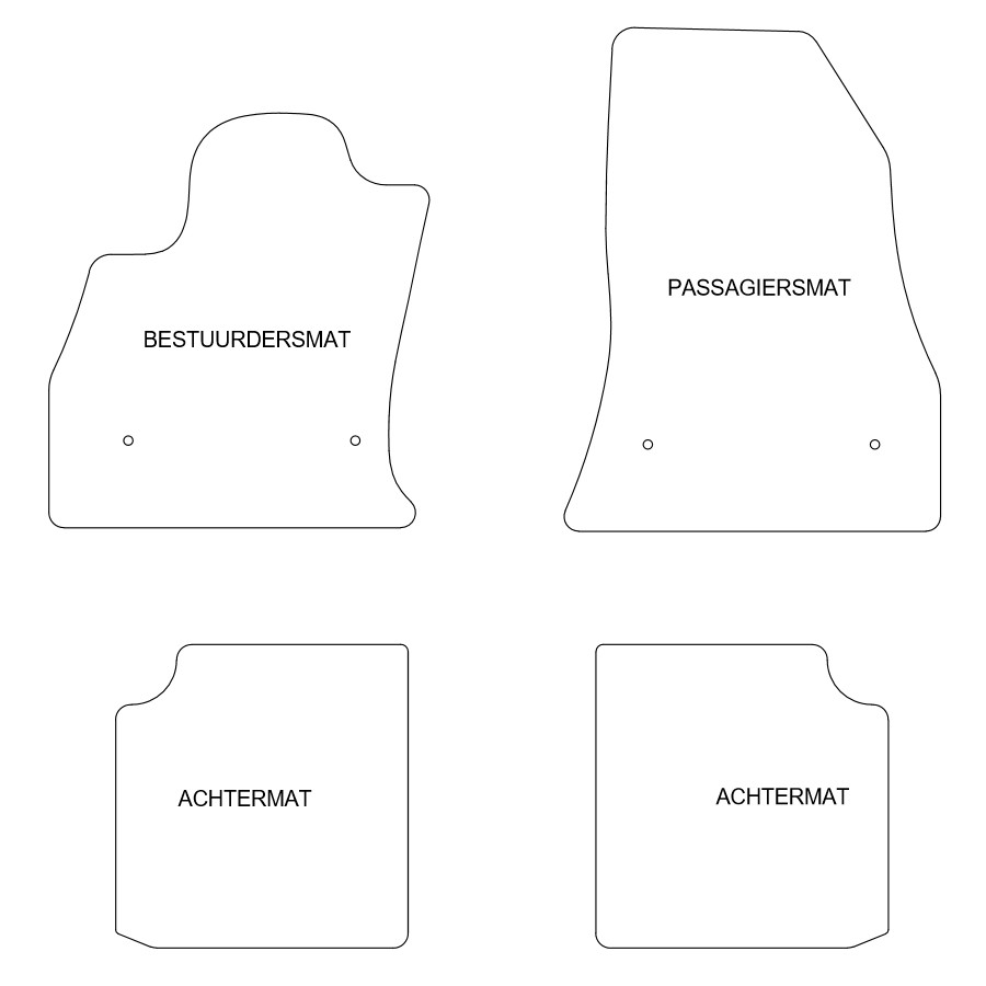 Du kan enkelt och säkert placera dessa bilmattor på bilens monteringshål. Undersidan är gjord av robust halksäker granulat och nålfiltet av hög kvalitet garanterar en mycket lång livslängd. I vissa fall måste du överföra fästet på dina gamla mattor och / eller en matta kan bestå av ett stycke (MPV / buss). Vill du ha hjälp med att beställa rätt bilmattor? Fråga vår kundtjänst!