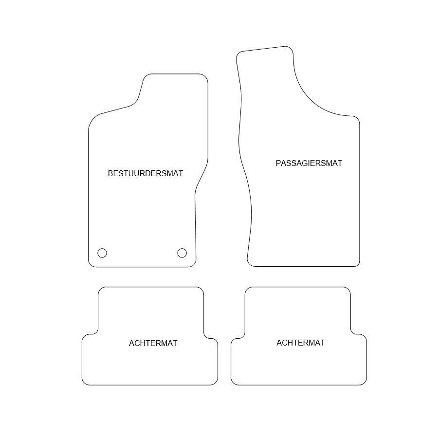 Du placerar dessa bilmattor enkelt och säkert på bilens monteringshål. Botten är tillverkad av robust slipskyddande granulat och högkvalitets nålfilt ger en mycket lång livslängd. I vissa fall måste du överföra fastsättningen av dina gamla mattor och / eller en matta kan bestå av en bit (MPV / buss). Vill du ha hjälp med att beställa rätt bilmattor? Fråga vår kundtjänst!