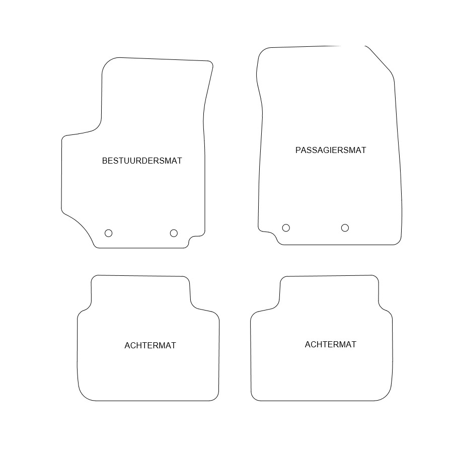 Du placerar dessa bilmattor enkelt och säkert på bilens monteringshål. Botten är tillverkad av robust slipskyddande granulat och högkvalitets nålfilt ger en mycket lång livslängd. I vissa fall måste du överföra fastsättningen av dina gamla mattor och / eller en matta kan bestå av en bit (MPV / buss). Vill du ha hjälp med att beställa rätt bilmattor? Fråga vår kundtjänst!