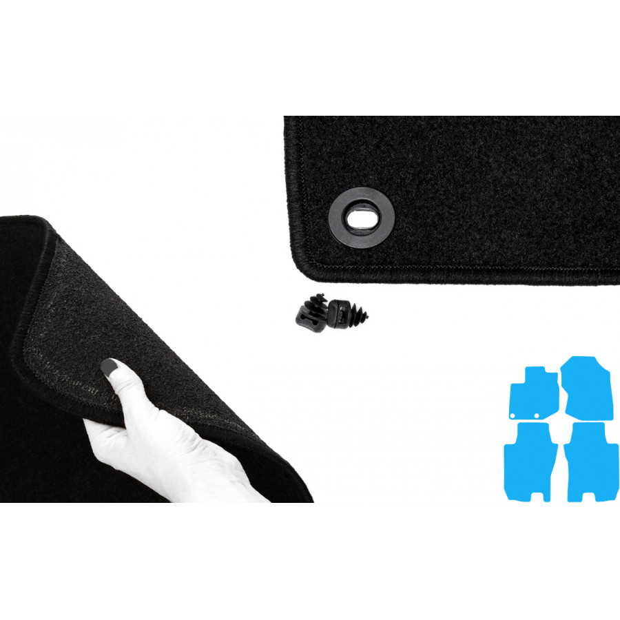 Du kan enkelt och säkert placera dessa bilmattor på bilens monteringshål. Undersidan är gjord av robust halksäker granulat och nålfiltet av hög kvalitet garanterar en mycket lång livslängd. I vissa fall måste du överföra fästet på dina gamla mattor och / eller en matta kan bestå av ett stycke (MPV / buss). Vill du ha hjälp med att beställa rätt bilmattor? Fråga vår kundtjänst!