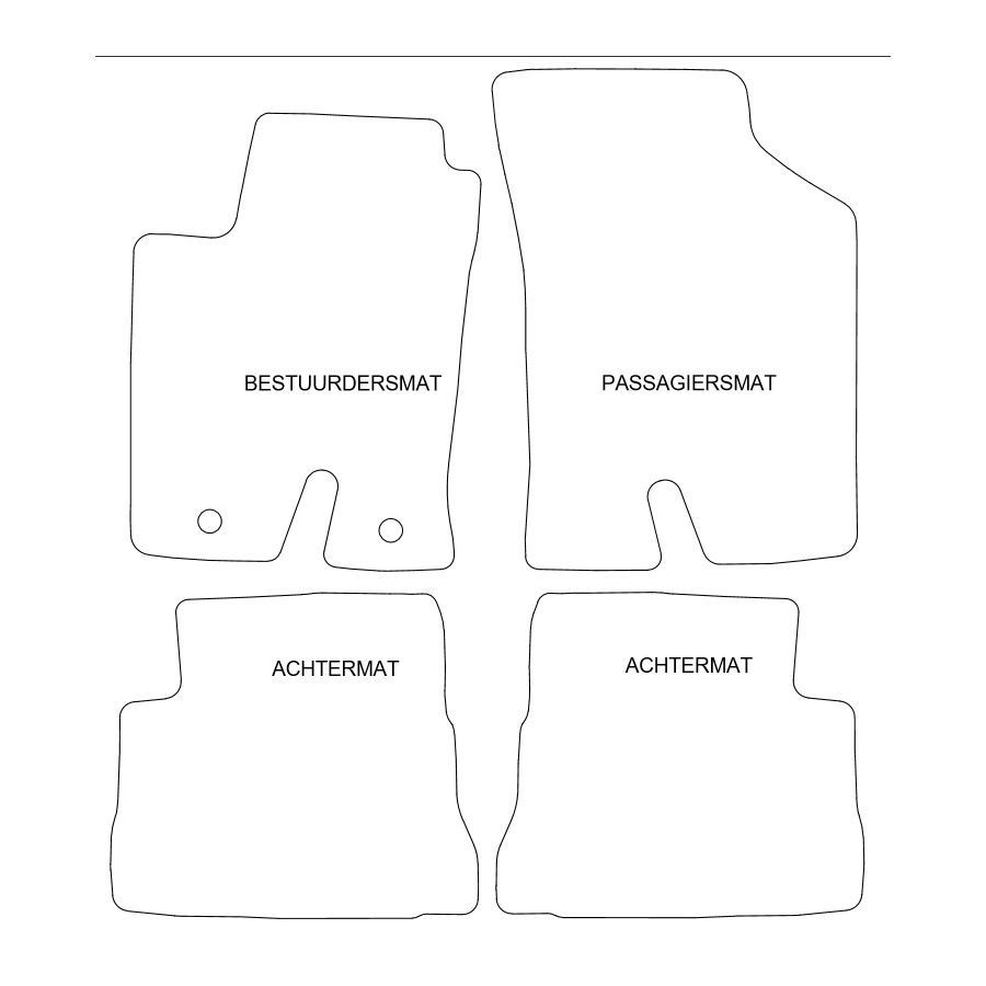 Du kan enkelt och säkert placera dessa bilmattor på bilens monteringshål. Undersidan är gjord av robust halksäker granulat och nålfiltet av hög kvalitet garanterar en mycket lång livslängd. I vissa fall måste du överföra fästet på dina gamla mattor och / eller en matta kan bestå av ett stycke (MPV / buss). Vill du ha hjälp med att beställa rätt bilmattor? Fråga vår kundtjänst!