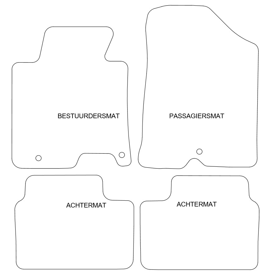 Du kan enkelt och säkert placera dessa bilmattor på bilens monteringshål. Undersidan är gjord av robust halksäker granulat och nålfiltet av hög kvalitet garanterar en mycket lång livslängd. I vissa fall måste du överföra fästet på dina gamla mattor och / eller en matta kan bestå av ett stycke (MPV / buss). Vill du ha hjälp med att beställa rätt bilmattor? Fråga vår kundtjänst!
