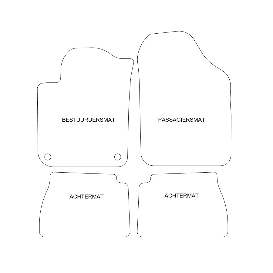 Du kan enkelt och säkert placera dessa bilmattor på bilens monteringshål. Undersidan är gjord av robust halksäker granulat och nålfiltet av hög kvalitet garanterar en mycket lång livslängd. I vissa fall måste du överföra fästet på dina gamla mattor och / eller en matta kan bestå av ett stycke (MPV / buss). Vill du ha hjälp med att beställa rätt bilmattor? Fråga vår kundtjänst!