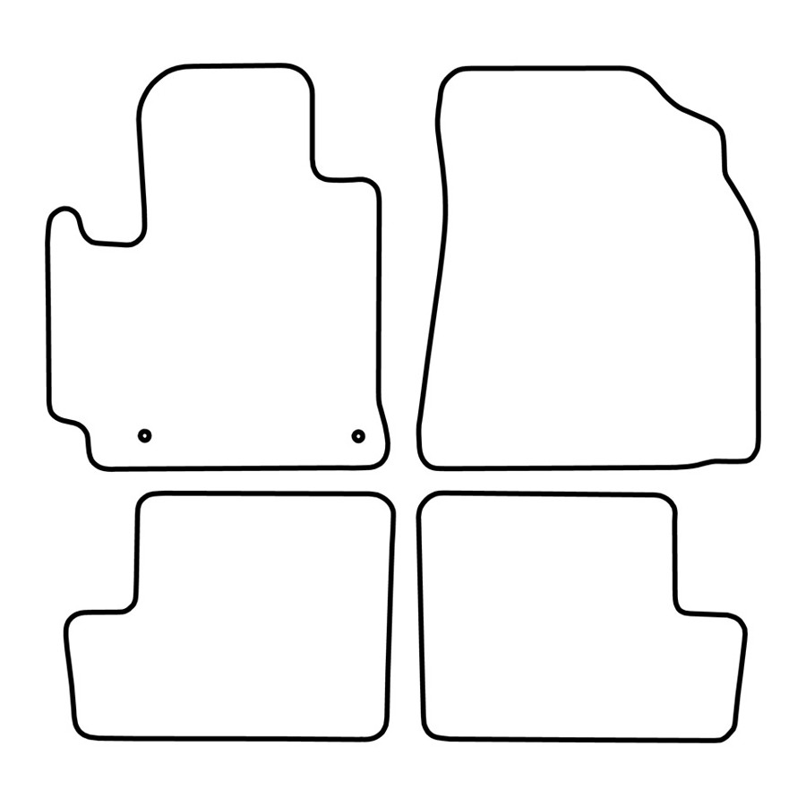 Dessa bilmattor är tillverkade av slitstark svart velour och har en vågig kant, vilket ger dem ett lyxigt utseende. De har också standardmonteringshål så att du enkelt kan klicka fast dem i din bil, precis som originalen. De har också ett granulatbaserat halkskyddsskikt för att förhindra att mattorna glider.