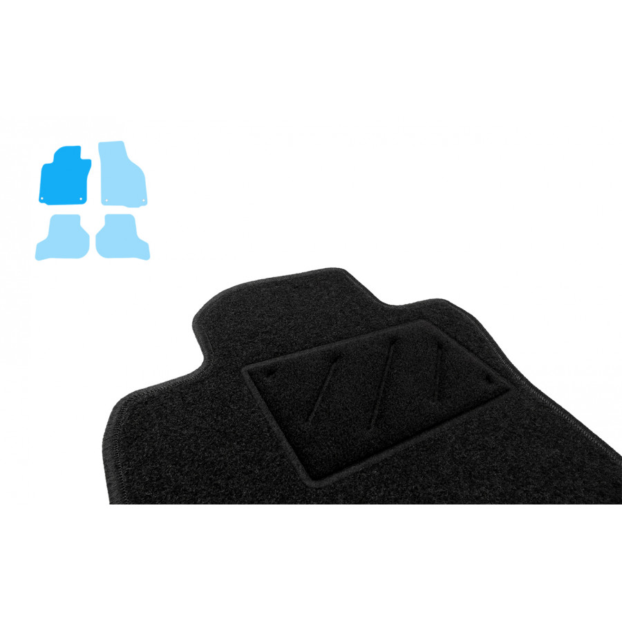 Du kan enkelt och säkert placera dessa bilmattor på monteringshålen i din bil. Botten är gjord av robust antislipgranulat och den högkvalitativa nålfilten garanterar en mycket lång livslängd. I vissa fall måste du överföra fästningen av dina gamla mattor och / eller en matta kan bestå av en bit (MPV / buss). Vill du ha hjälp med att beställa rätt bilmattor? Fråga vår kundtjänst!