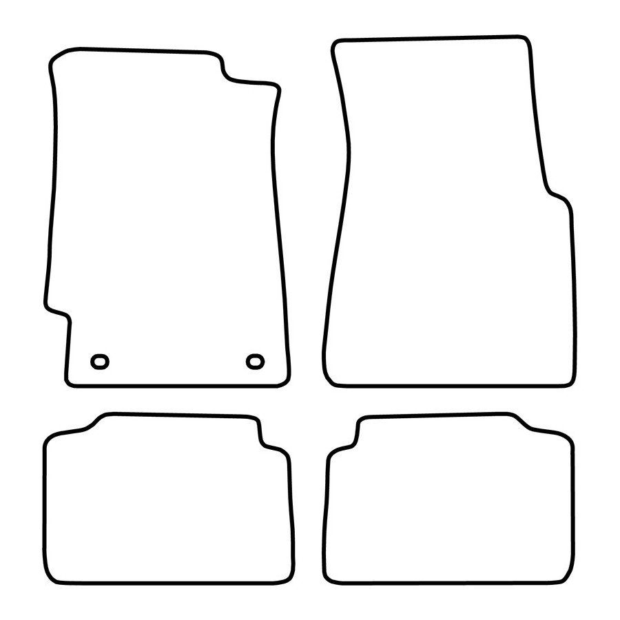 Dessa bilmattor är tillverkade av slitstark svart velour och har en vågig kant, vilket ger dem ett lyxigt utseende. De har också standardmonteringshål så att du enkelt kan klicka fast dem i din bil, precis som originalen. De har också ett granulatbaserat halkskyddsskikt för att förhindra att mattorna glider.