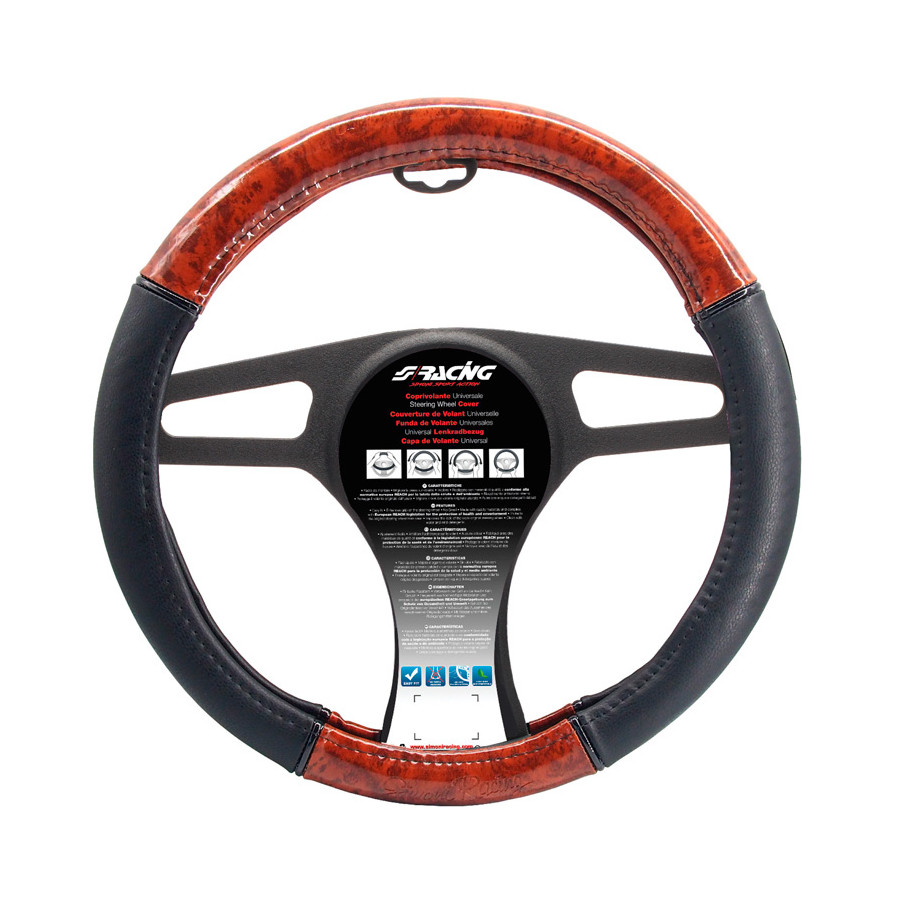 Simoni Racing Rattöverdrag Trä - Svart Eko-Läder Trälook - 37-39cm