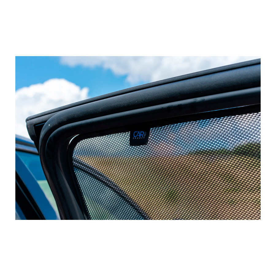 Set med färdiga Car Shades solgardiner för bakdörrarna, perfekta under det vackra sommarvädret, långa semesterresor och speciellt för dina passagerare. Solskydden håller den strålande solen ute och den specialvävda tygstrukturen ger din bil ett snyggt diskret utseende, dina rutor får ett utseende som tonade rutor. Du klickar helt enkelt på Car Shades mellan dina fönsterstilar och tar bort dem lika enkelt.