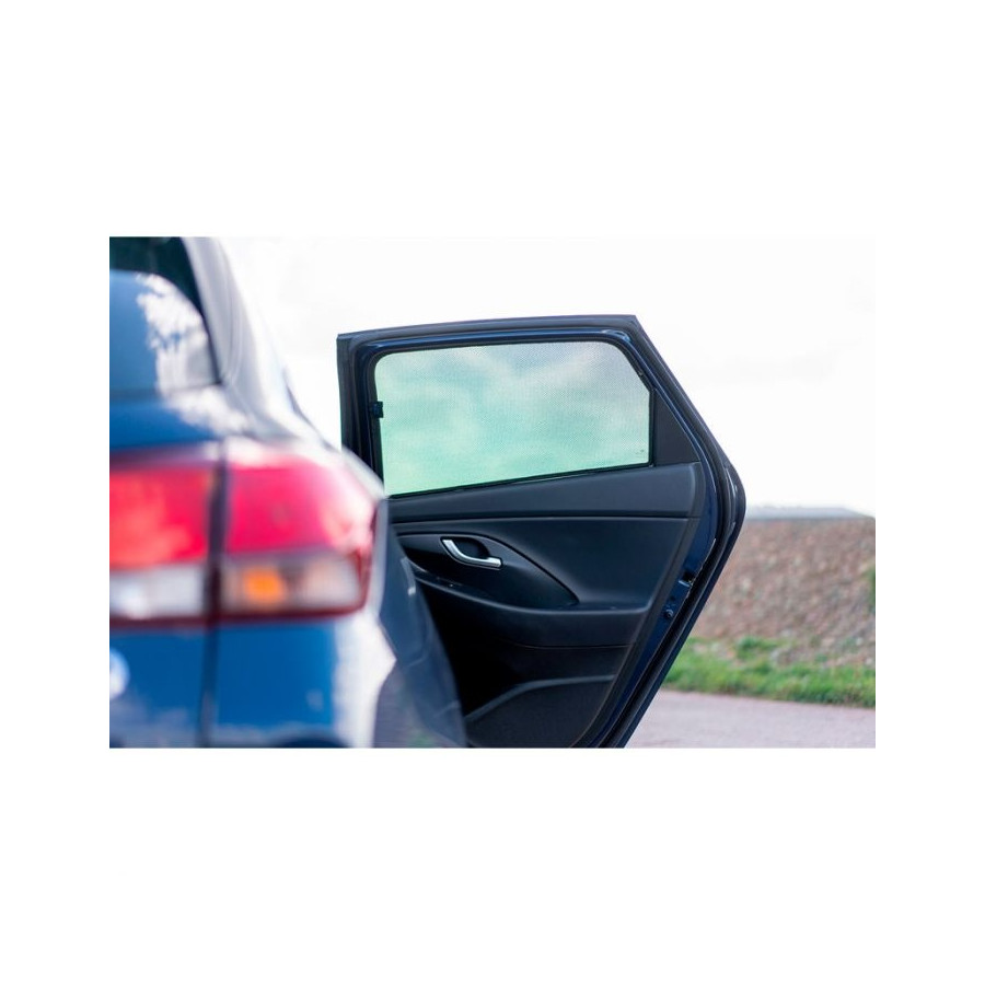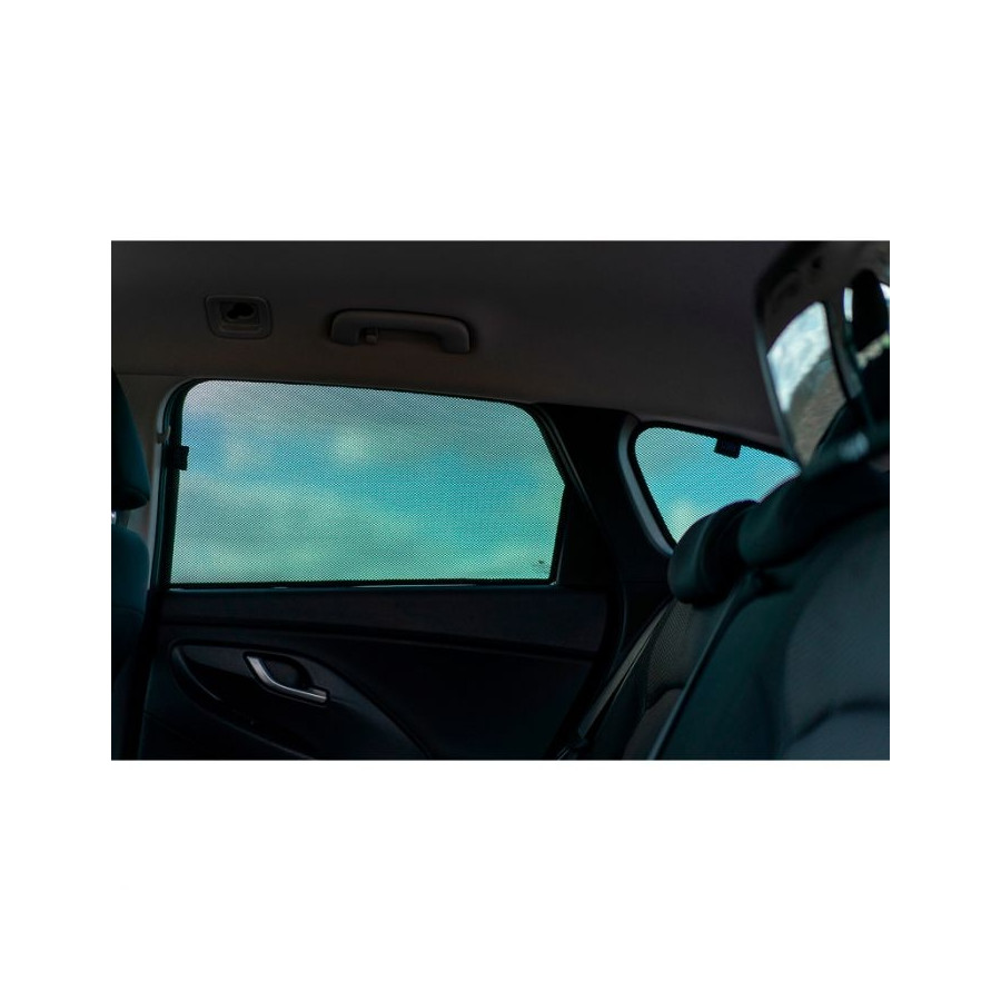 Set med färdiga Car Shades solgardiner för bakdörrarna, perfekta under det vackra sommarvädret, långa semesterresor och speciellt för dina passagerare. Solskydden håller den strålande solen ute och den specialvävda tygstrukturen ger din bil ett snyggt diskret utseende, dina rutor får ett utseende som tonade rutor. Du klickar helt enkelt på Car Shades mellan dina fönsterstilar och tar bort dem lika enkelt.