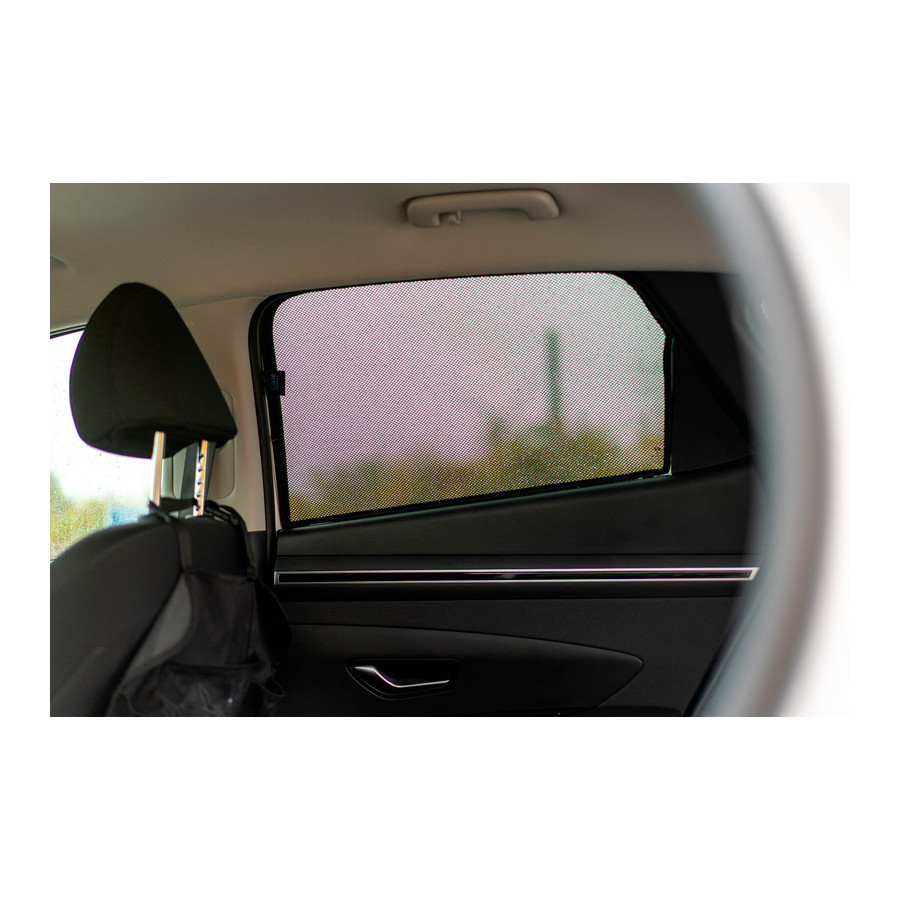 Solskydd från Privacy Shades är perfekta under det vackra sommarvädret, långa semesterresor och speciellt för dina passagerare. Dessa solskydd håller ute den strålande solen och den specialvävda tygstrukturen ger din bil ett snyggt diskret utseende, dina fönster får ett utseende som tonade rutor.