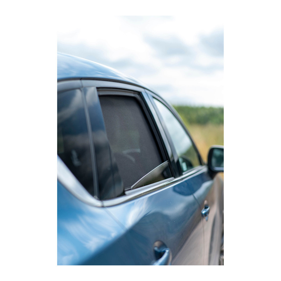 Du klickar helt enkelt på Privacy Shades bilsolgardiner mellan dina fönsterkarmar och tar bort dem lika enkelt. De är det perfekta alternativet till fönsterfilm, solgardiner och dyra insynsglas eftersom de kombinerar allt i 1. Privacy Shades håller solen ute, du kan helt enkelt köra med fönstret öppet. På så sätt kan du släppa in den svala vinden under det varma vädret. Även med ett helt öppet fönster har solstrålar och insekter ingen chans att tränga in. För bilar utan luftkonditionering är det en oumbärlig lösning mot sol och värme. Varje set Privacy Shades består av färdiga solskydd för alla fönster från B-stolpen.