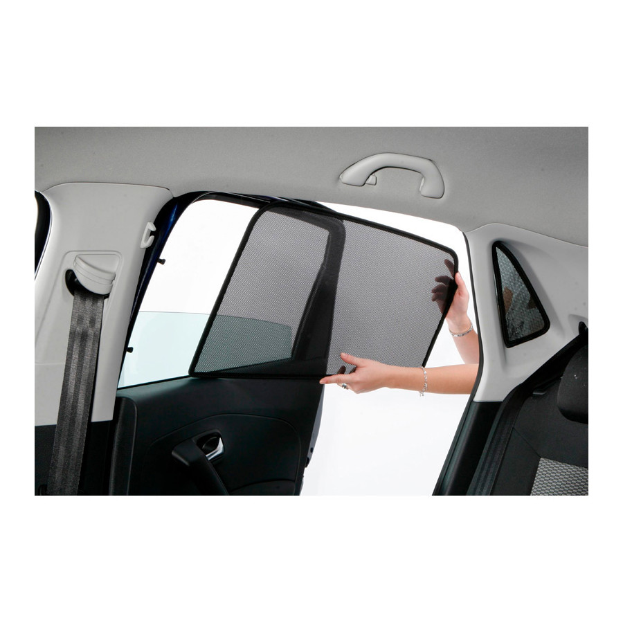 Solskydd är perfekta för vackert sommarväder, långa semestrar och särskilt för dina passagerare. Dessa solskydd håller ute den starka solen och tack vare det specialvävda tyget ger de din bil ett elegant och diskret utseende, vilket ger dina fönster utseendet av tonade rutor.