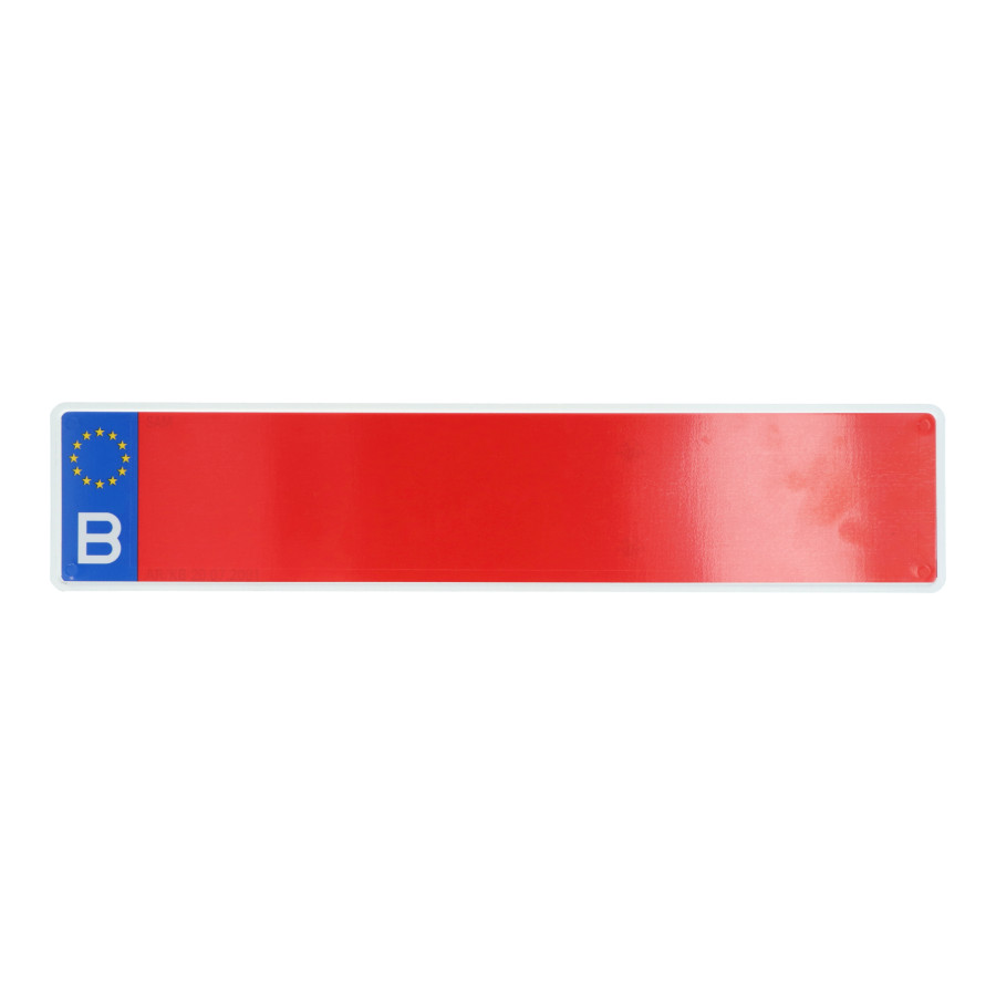 Carpoint avlång röd belgisk registreringsskylt med vit kant för användning på jordbruksfordon i Belgien. Den har fyra hål för montering. Den röda registreringsskylten mäter 52x11 cm och har den europeiska flaggan med landets namn Belgien.