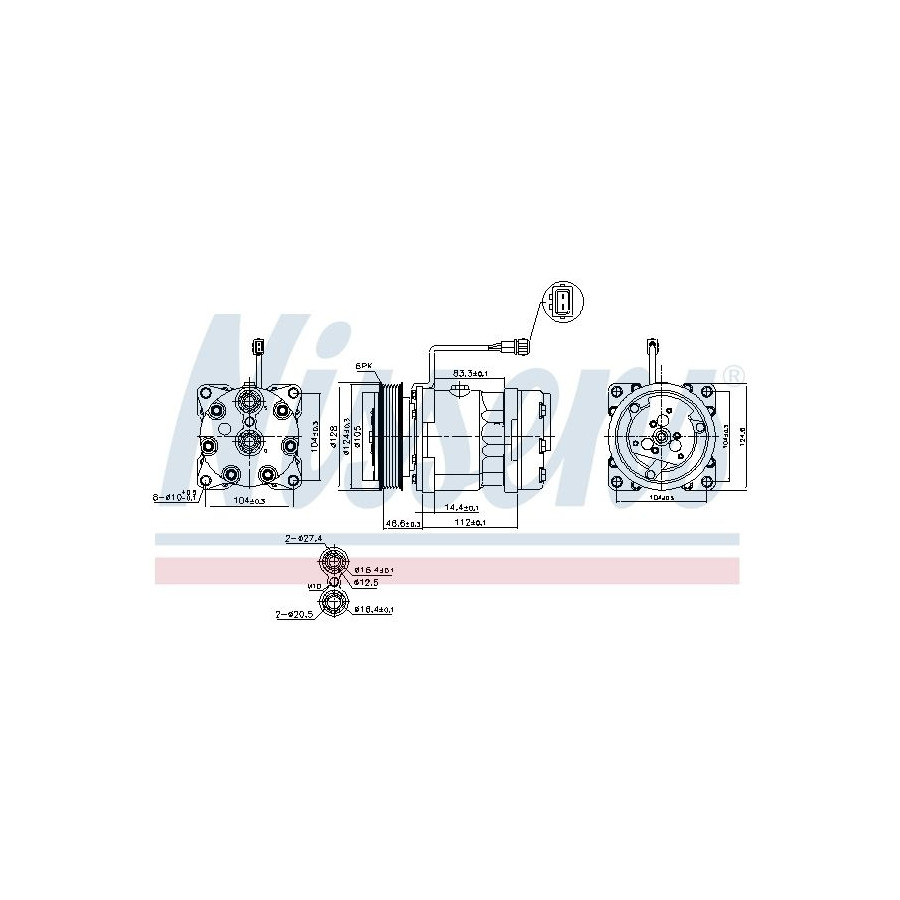 Applikation Luftkonditioneringspump Kompletteringsartikel/tilläggsinfo 2 Met PAG compressorolie Met magneetkoppeling Spänning [V] 12 Remskive-Ø [mm] 128 Kylmedia R 134a Kompressor-ID SD7H15 Antal splines 6 Cylinderkompressor (ccm) 150 Oljevolym [ml] 180 Kontakthållarform Rektangulär Kontaktutförande Male Garanti 2 år Antal kontakter 2 Kompressorolja PAG 46 Avgasdiameter [mm] 16,4 Utgångsdiameter [mm] 16,4 Liknande produkter från andra tillverkare