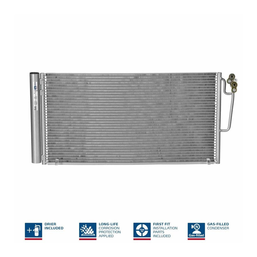 FIRST FIT -Inklusive O-ringar om det behövs Korrosionsskydd – Specialbeläggning skyddar kondensorn mot korrosion och garanterar lång livslängd Kvävefyllning – Förseglad med gaspåfyllning för att hålla fukt ute håll