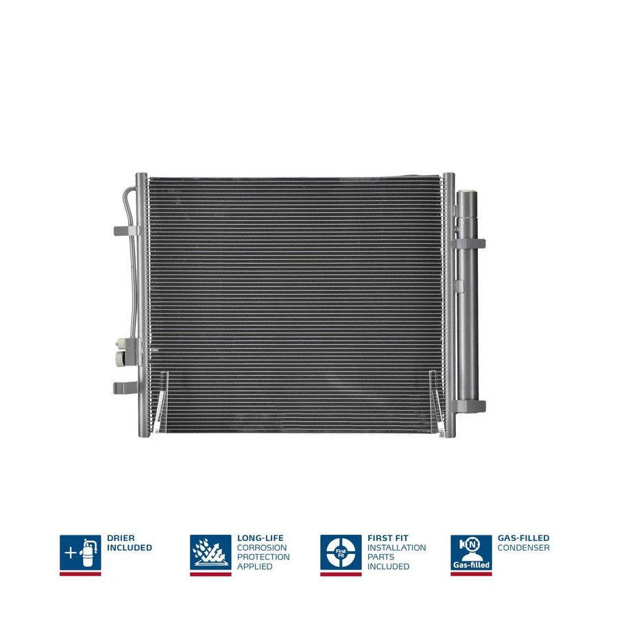 FIRST FIT -Inklusive O-ringar om det behövs Korrosionsskydd – Specialbeläggning skyddar kondensorn mot korrosion och garanterar lång livslängd Kvävefyllning – Förseglad med gaspåfyllning för att hålla fukt ute håll