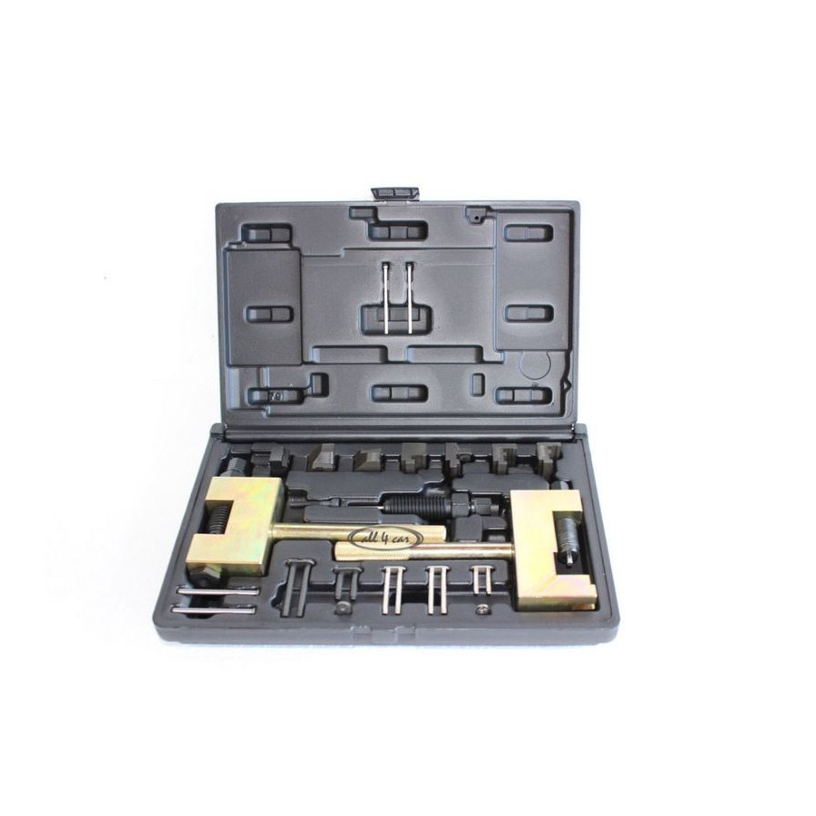 Denna uppsättning tillhandahåller delning och installation av kamkedjan på Mercedes-Benz-modellerna. Verktyget säkerställer snabb och enkel demontering. Lämplig för enkelsidiga och dubbelsidiga kedjor. Lämplig för Simplex och Duplex kedja för de flesta BENZ diesel- och bensinmotorer.