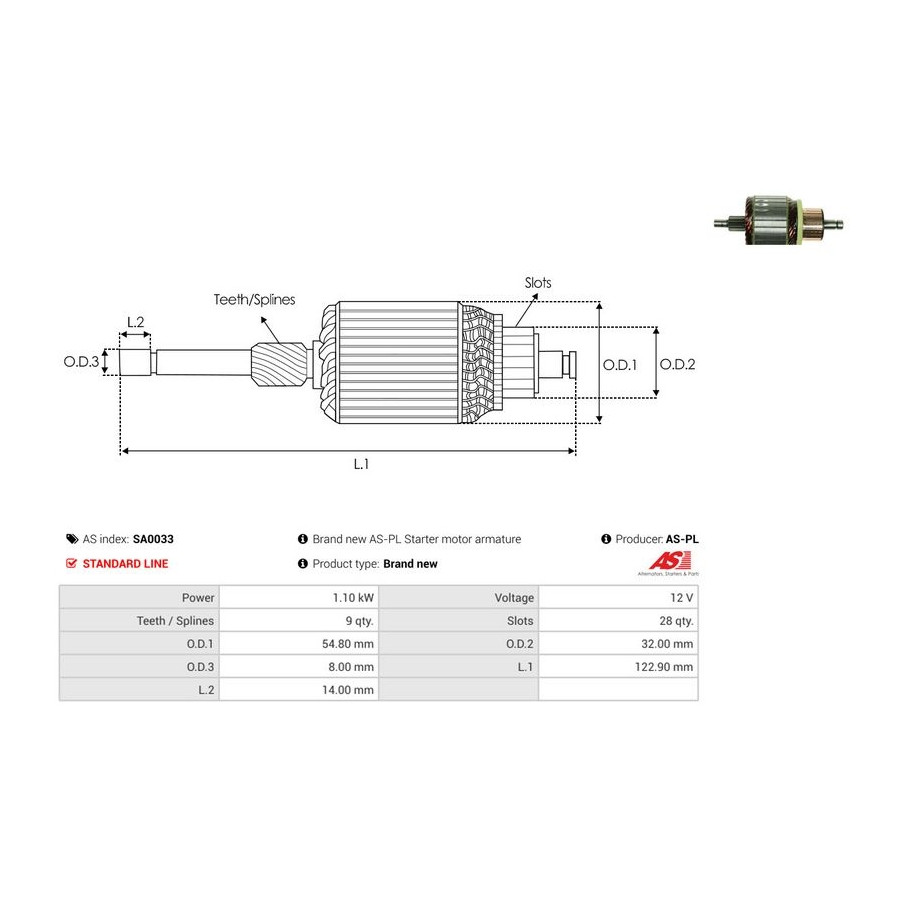Ytterdiameter [mm] 54,80 Spänning [V] 12 Tandantal 9 Kvalitet Standard line Längd 1 [mm] 122,9 Rotationsriktning Rotation medsols Garanti 2 år Ny del utan deposition Startmotorns effekt [kW] 1,1 -