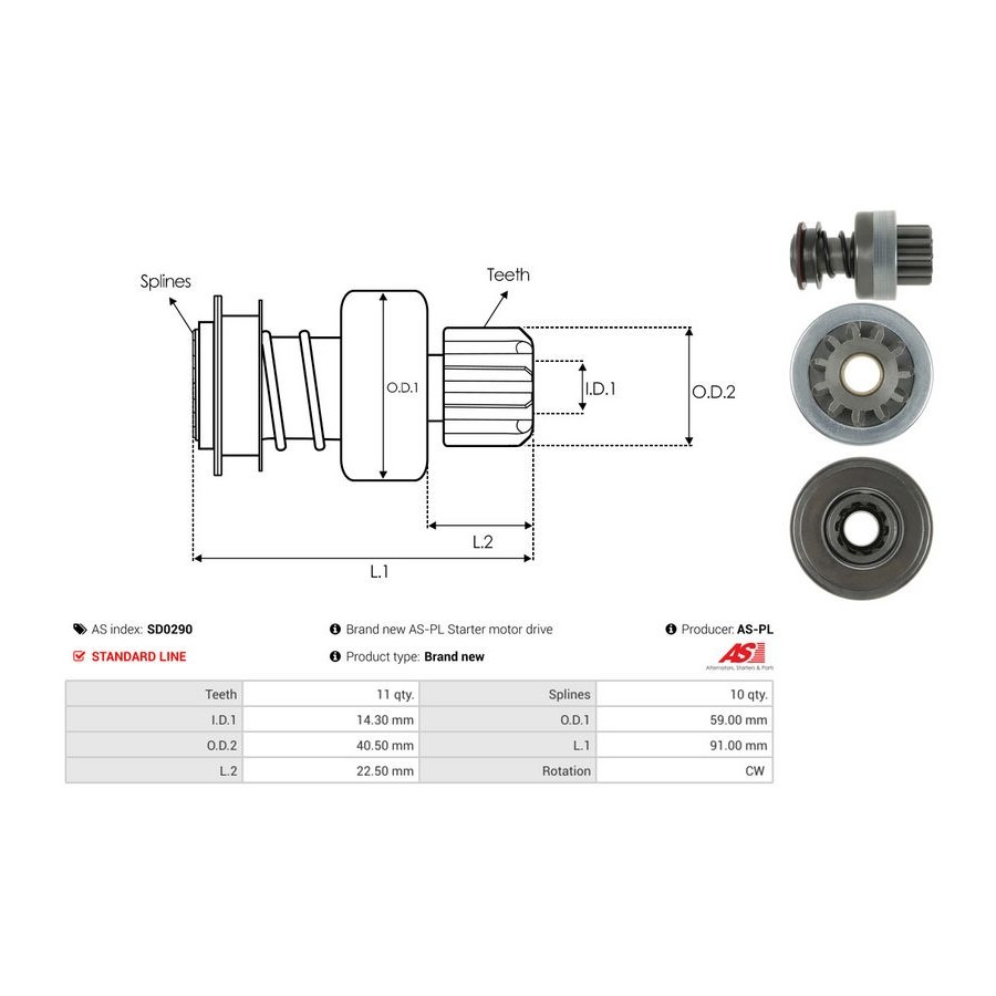 Innerdiameter [mm] 14,30 Tandantal 11 Ytterdiameter 1 [mm] 59,00 Ytterdiameter 2 [mm] 40,50 Kvalitet Standard line Längd 1 [mm] 91 Rotationsriktning Rotation medsols Garanti 2 år Ny del utan deposition -