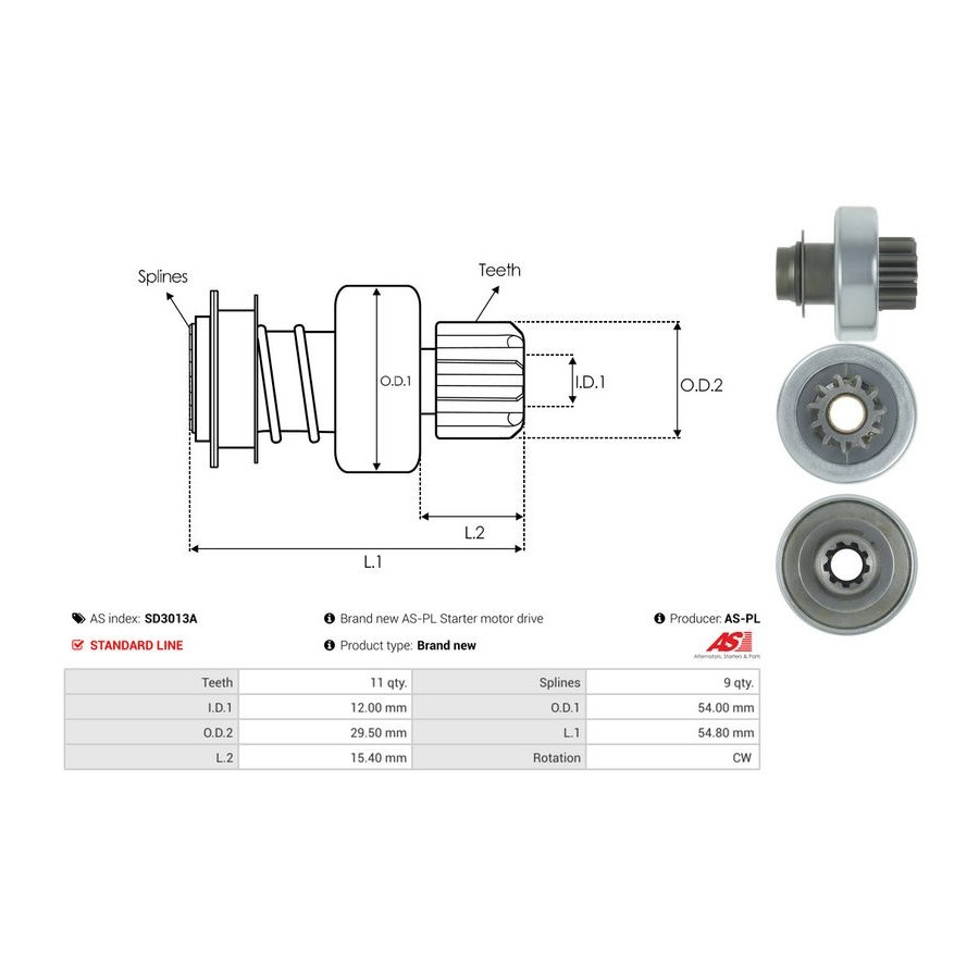 Innerdiameter [mm] 12,00 Tandantal 11 Ytterdiameter 1 [mm] 54,00 Ytterdiameter 2 [mm] 29,50 Kvalitet Standard line Längd 1 [mm] 54,8 Rotationsriktning Rotation medsols Garanti 2 år Ny del utan deposition -