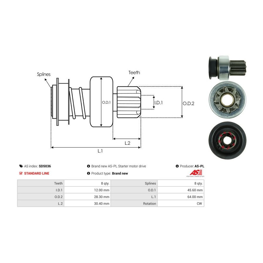 Innerdiameter [mm] 12,00 Tandantal 8 Ytterdiameter 1 [mm] 45,60 Ytterdiameter 2 [mm] 28,30 Kvalitet Standard line Längd 1 [mm] 64 Rotationsriktning Rotation medsols Garanti 2 år Ny del utan deposition Liknande produkter från andra tillverkare