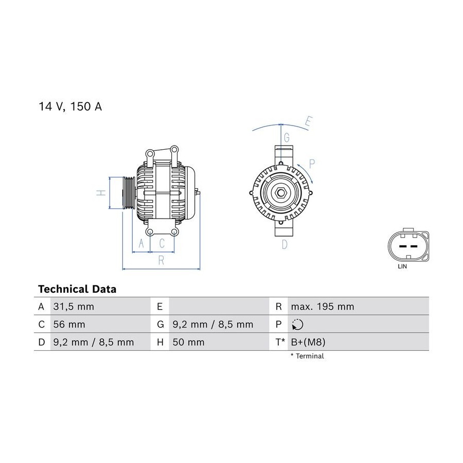 | Generator-laddström [A] | 150 |